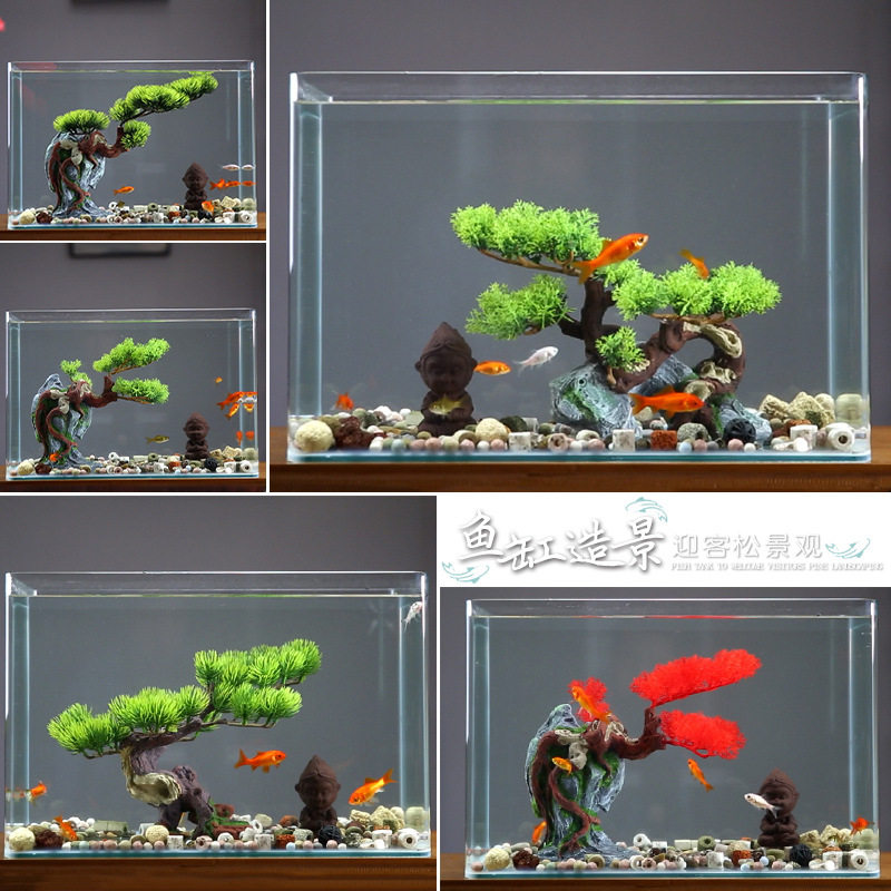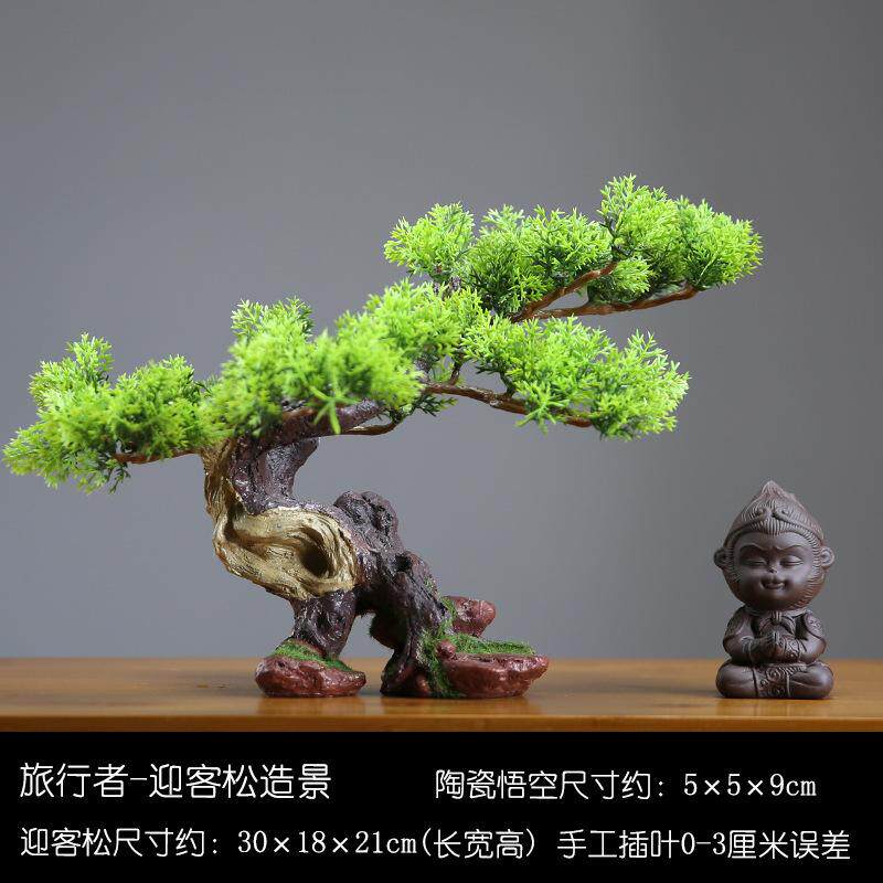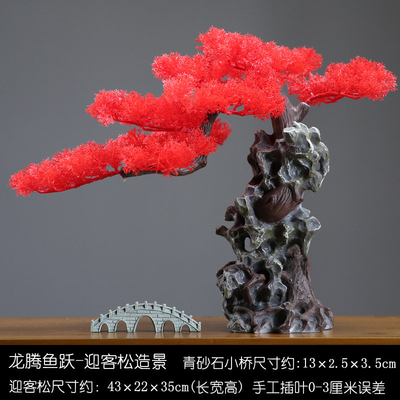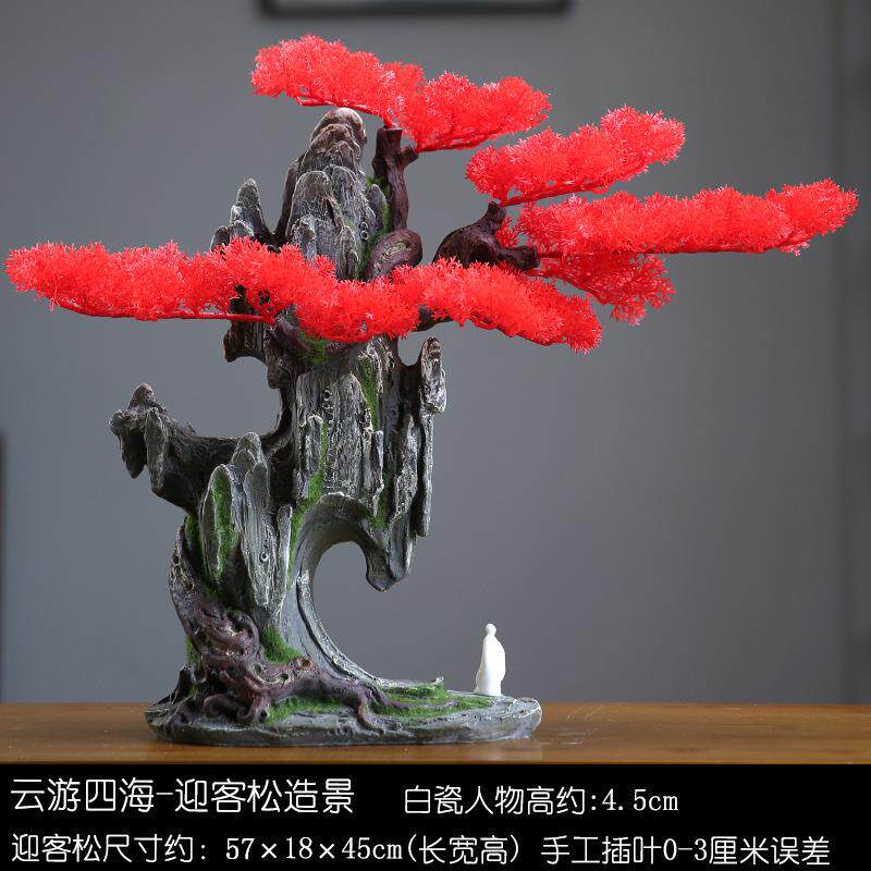 鱼缸装饰造景摆件迎客松客厅假山玄关柜仿真罗汉松树生态景观