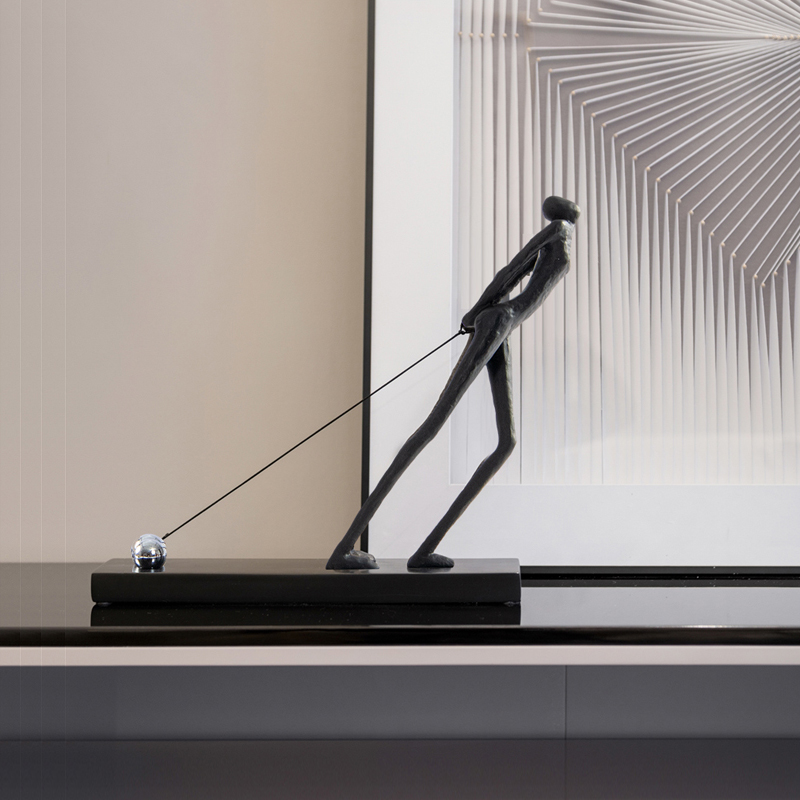 现代简约拉绳人物摆件客厅酒柜电视柜装饰品样板房酒柜设计师软装