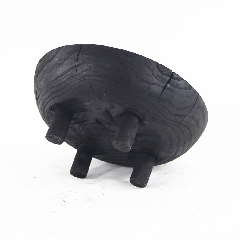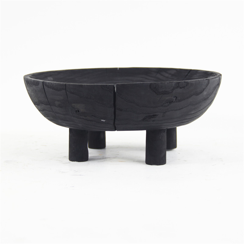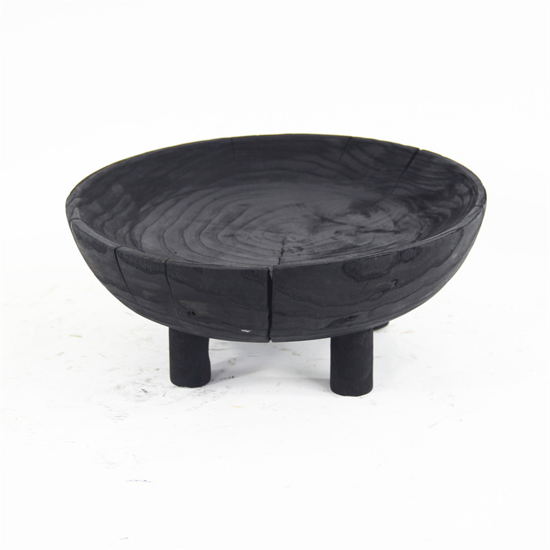 厂家销售手制碳化栗木黑色托盘果盘家居别墅侘寂风赤贫风装饰摆件