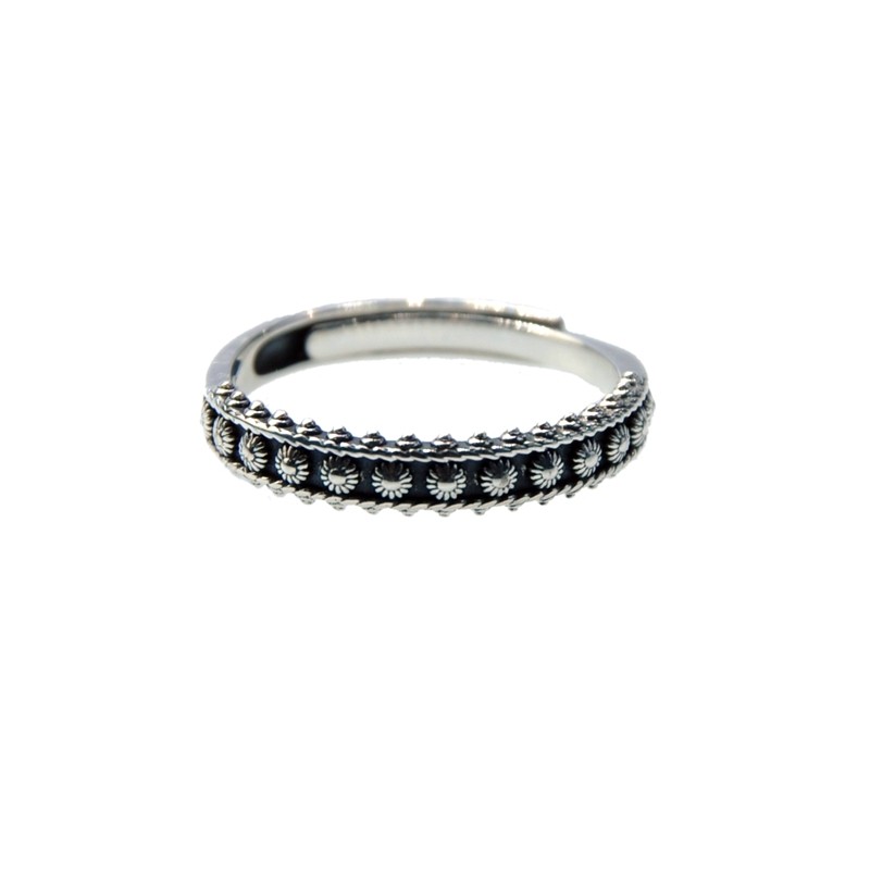 子墨北桑设计s925银复古泰银手工小花戒指开口简约百搭文艺清新