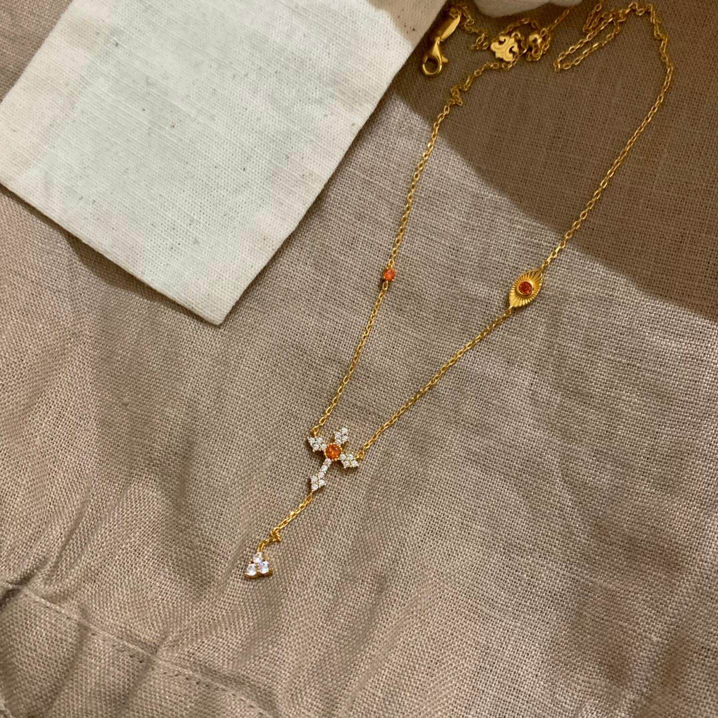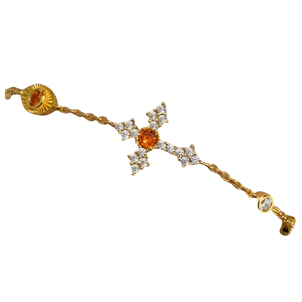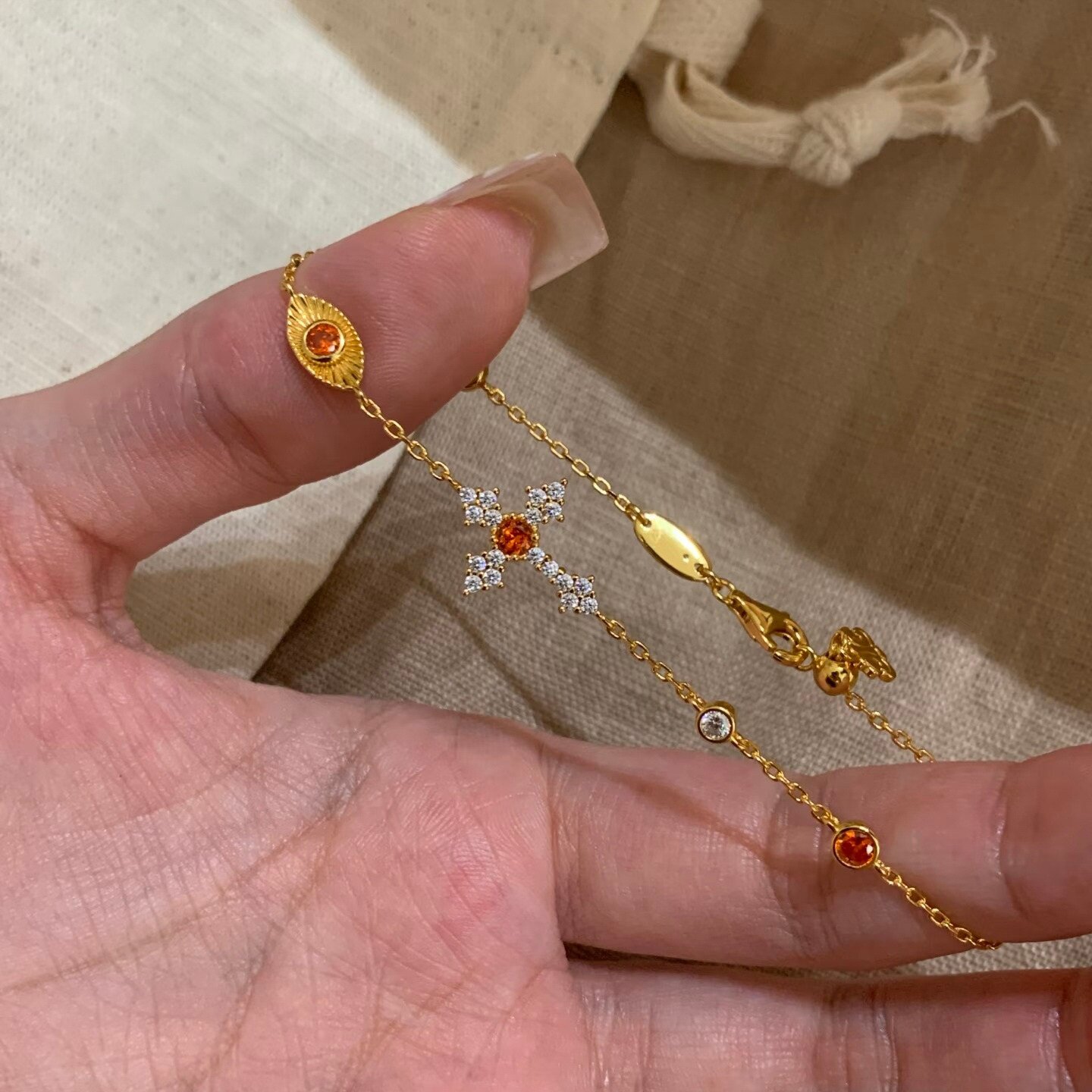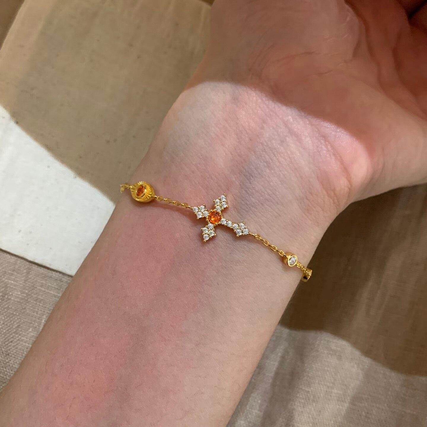 中古橙色闪钻十字架手链女vintager手饰精致叠戴配饰品小众设计