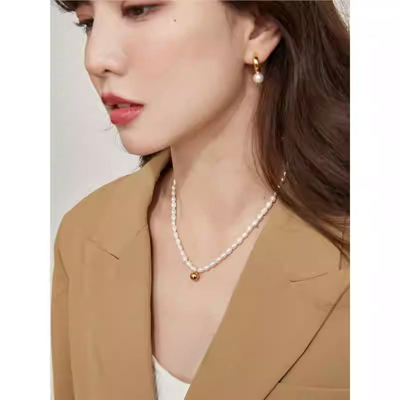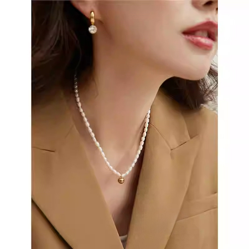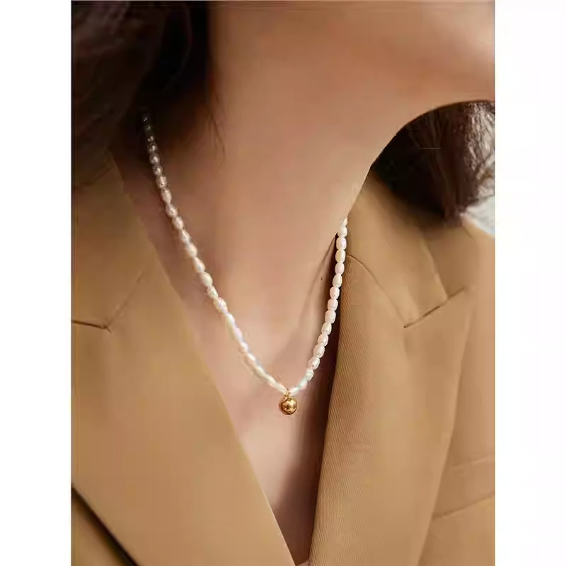 MORI DORI法式复古轻奢淡水珍珠气质项链小众时髦金球吊坠锁骨链