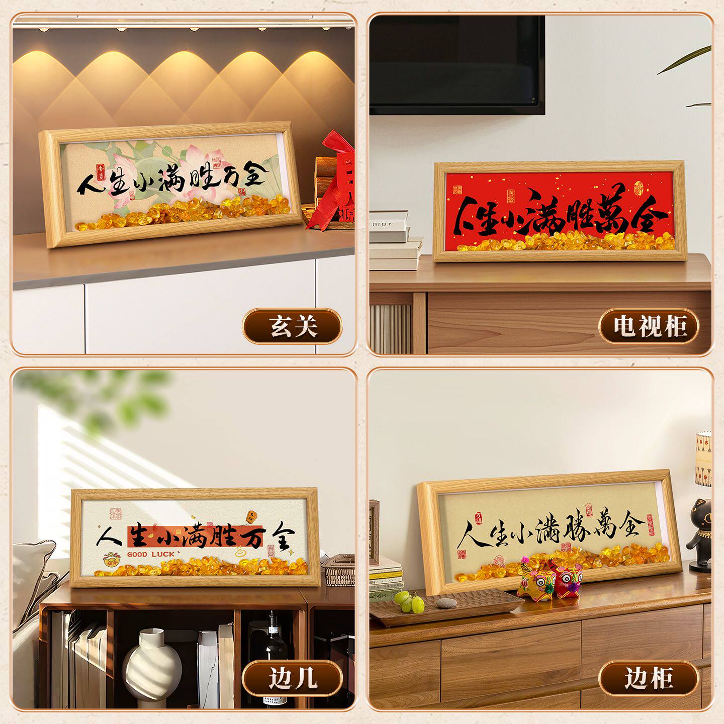 人生小满胜万全书法相框摆台入户门喜庆氛围感摆件客厅祝福装饰画