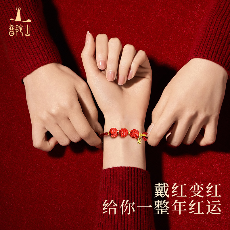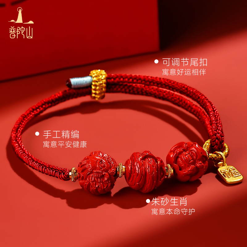 普陀山十二生肖三合本命年红绳手链官方正品朱砂编织绳手绳可调节