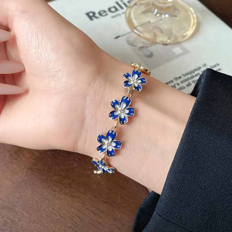 复古克莱因滴油镶钻花朵手链小众设计手环时级感百搭手饰