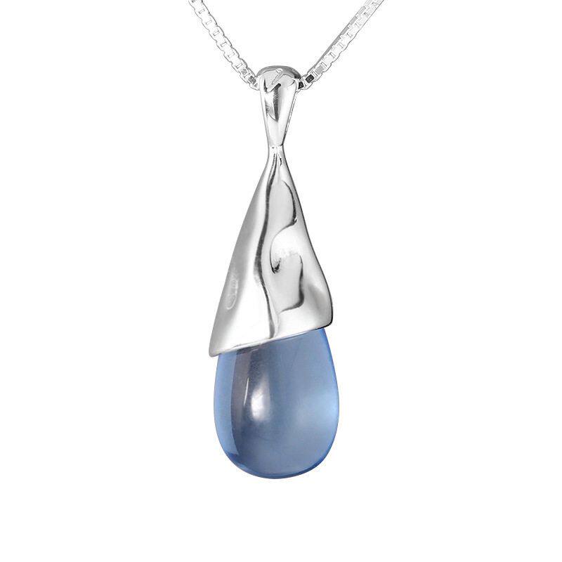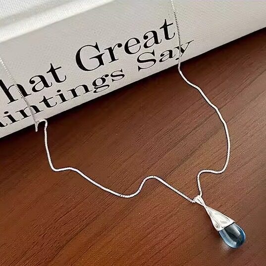 槐序HX【猫眼石系列】S925纯银蓝色水滴项链女ins复古法式锁骨链
