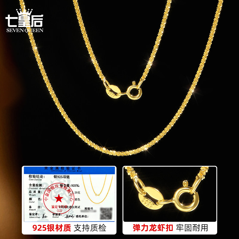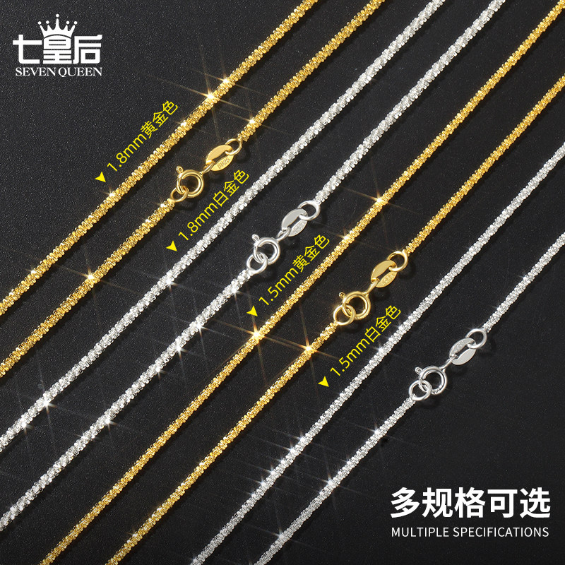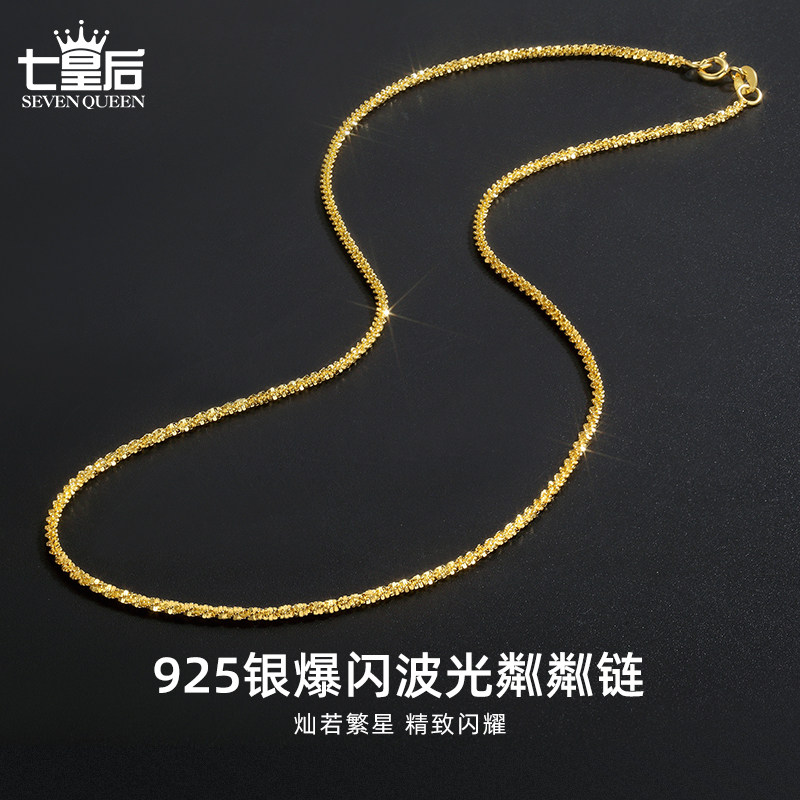 925纯银波光粼粼项链女镀18k金锁骨链素链白金爆闪满天星颈链2025