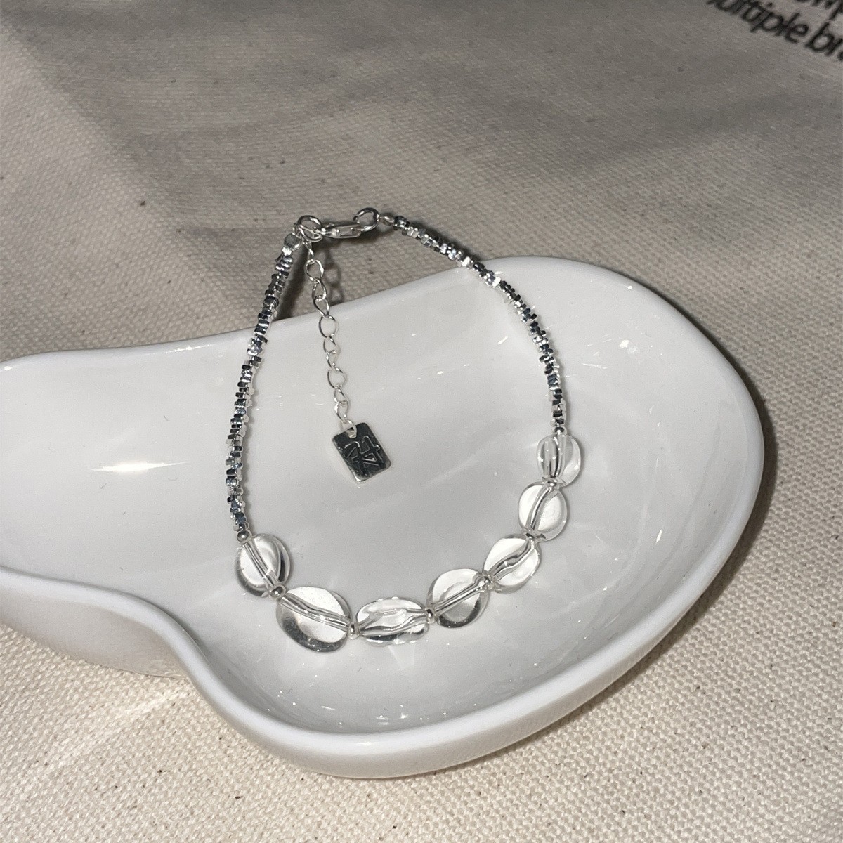 精致清冷感不规则透明白水晶手链女简约小众高级气质纯银饰品