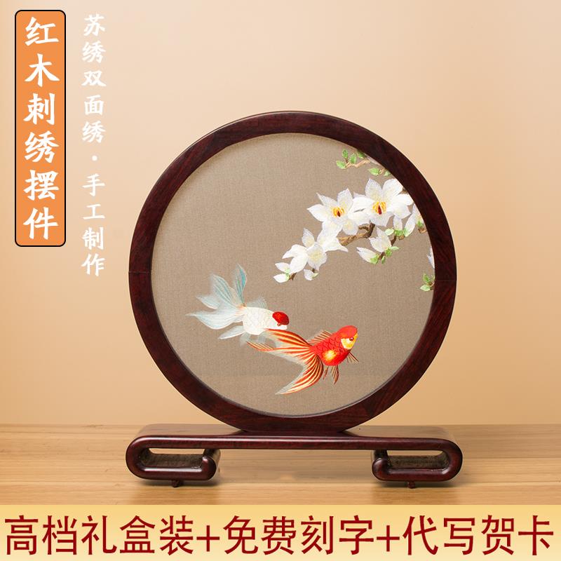 刺绣摆件成品手工双面绣小屏风创意桌面摆台苏绣古典台屏中式礼品
