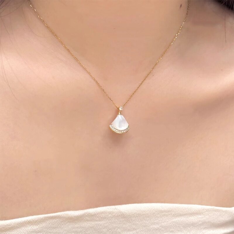 S925纯银扇形贝母裙子项链配饰女款复古高级感轻奢小众锁骨链礼物