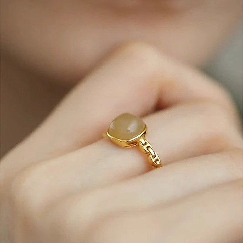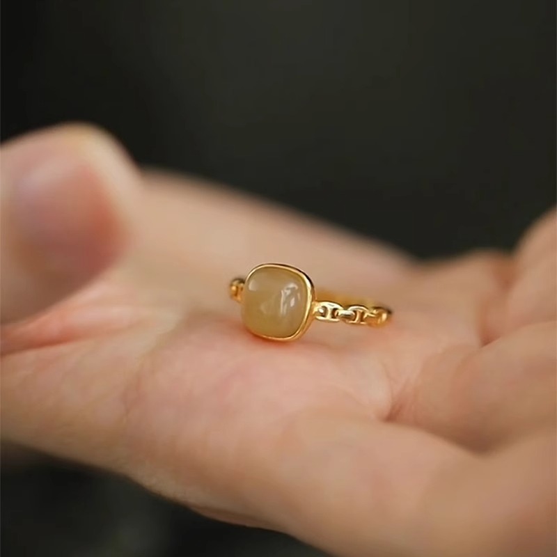 方糖戒指925银民族风小众高级感蜜蜡开口可调节女新款轻奢食指戒