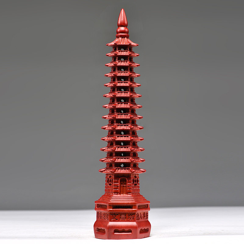 红色木质十三层文昌塔摆件实木雕刻9层13层木质办公室书桌工艺品
