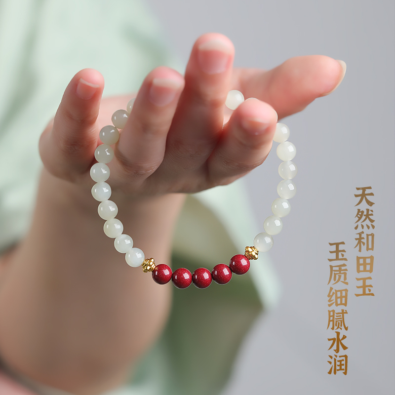 本命年朱砂手串女款正品官方旗舰店天然和田玉蛇年手链女情侣礼物