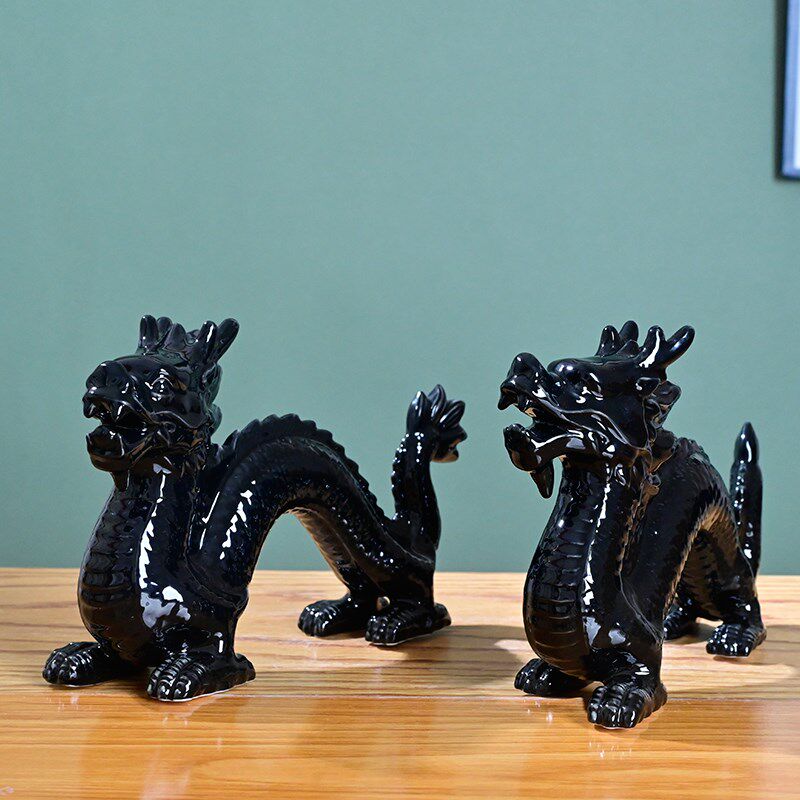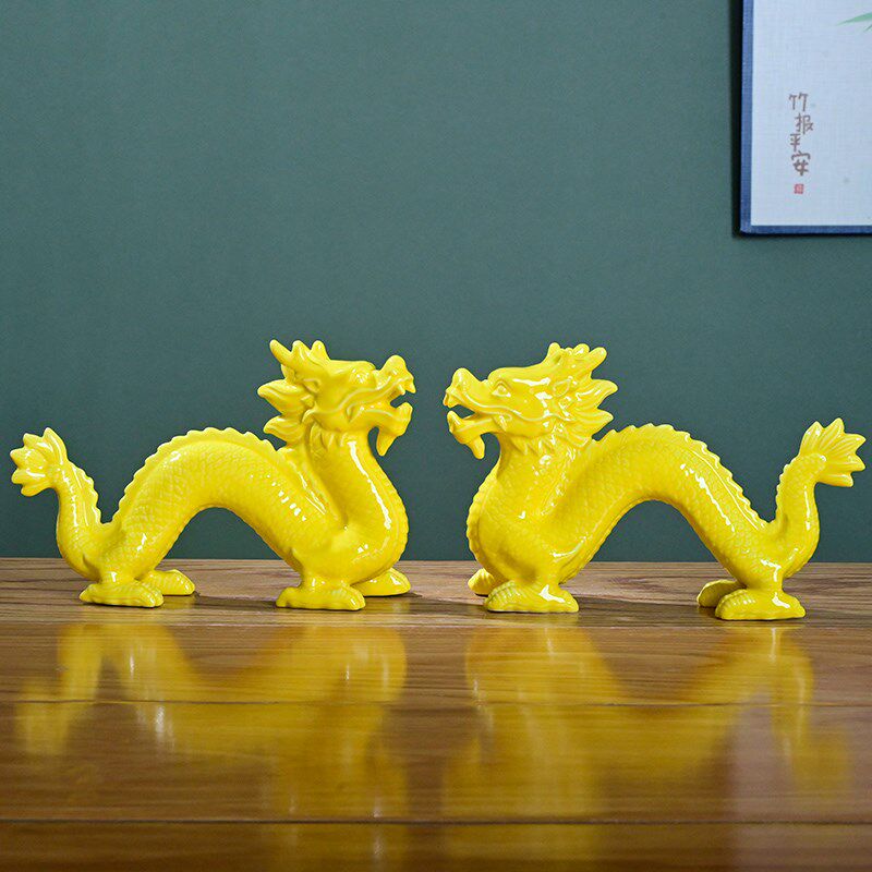 黄色陶瓷龙摆件十二生肖龙吉祥物招财镇宅客厅工艺品风水家居饰品