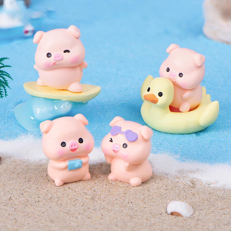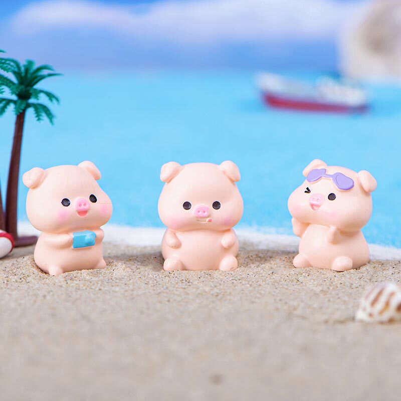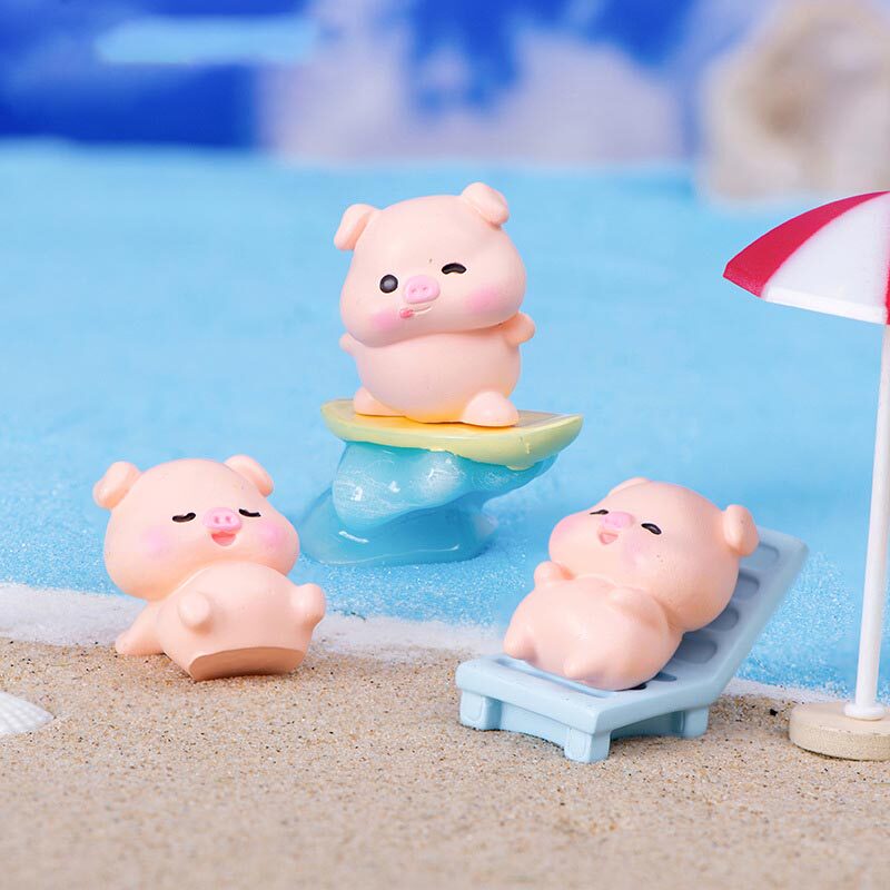可爱沙滩度假小猪猪手办玩偶沙滩海岸微景观小动物花盆装饰摆件