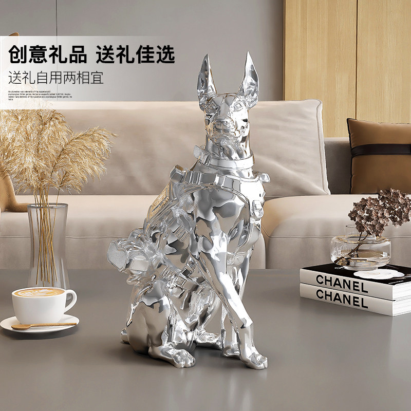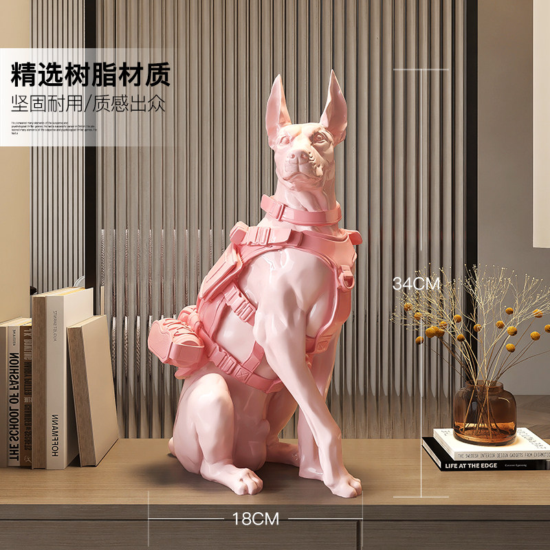 北欧轻奢杜宾犬桌面摆件高级感客厅玄关电视柜酒柜装饰品开业乔迁