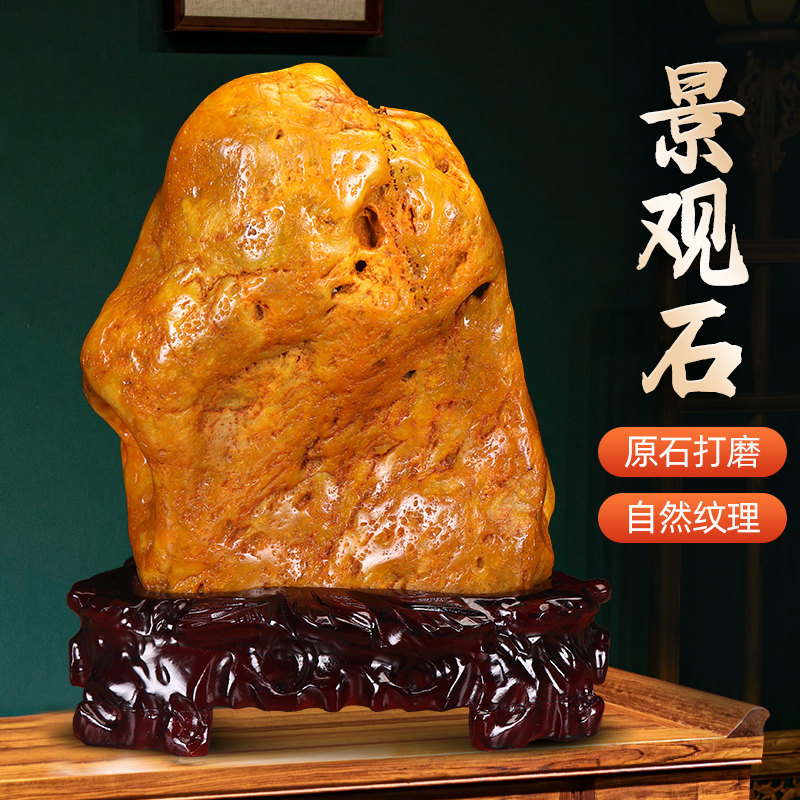 天然奇石黄蜡石原石摆件假山景观石室内客厅办公室观赏石头黄龙玉