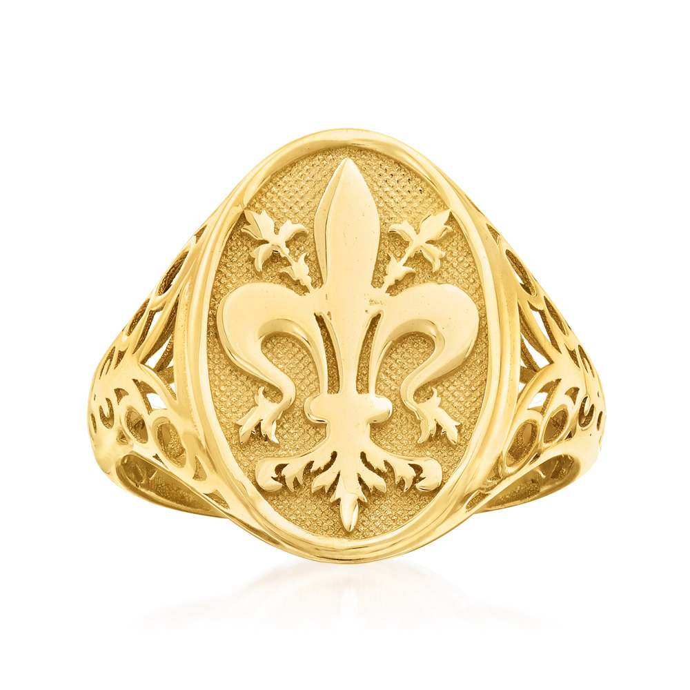 自营 Ross-Simons14 克拉黄金 Fleur-De-Lis 图章戒指 黄色 美国