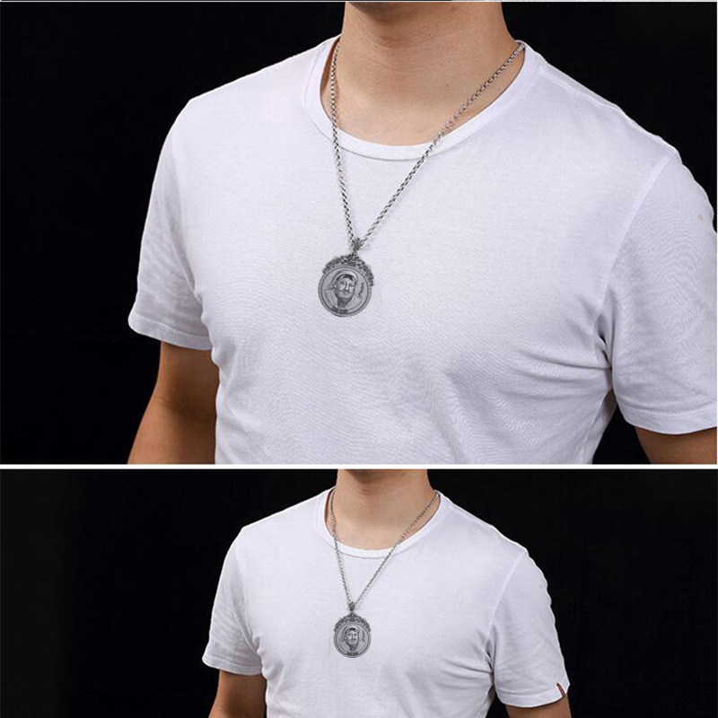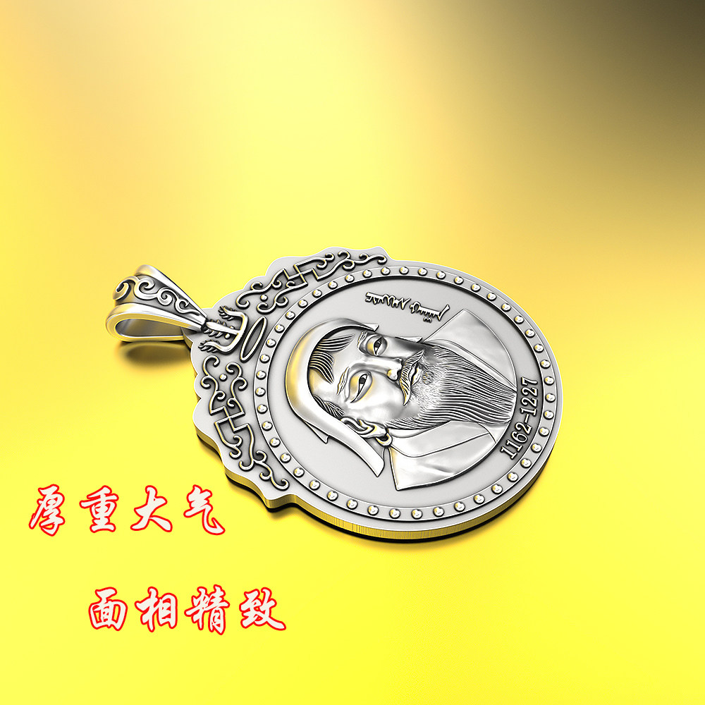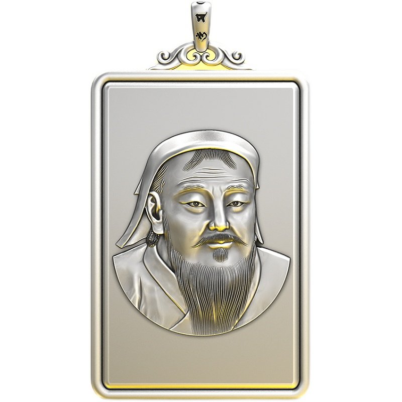 战神999纯银成吉思汗吊坠项链铁木真像复古民银族风男女手工银饰
