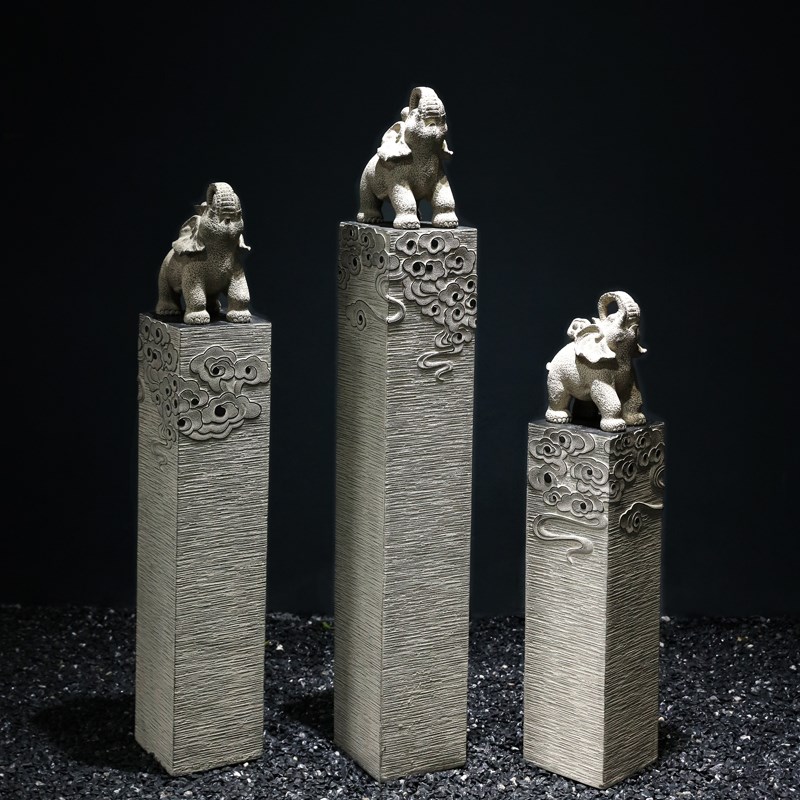 玄关摆件入户门装饰办公室仿石雕麒麟貔貅落地狮子一对中式拴马桩