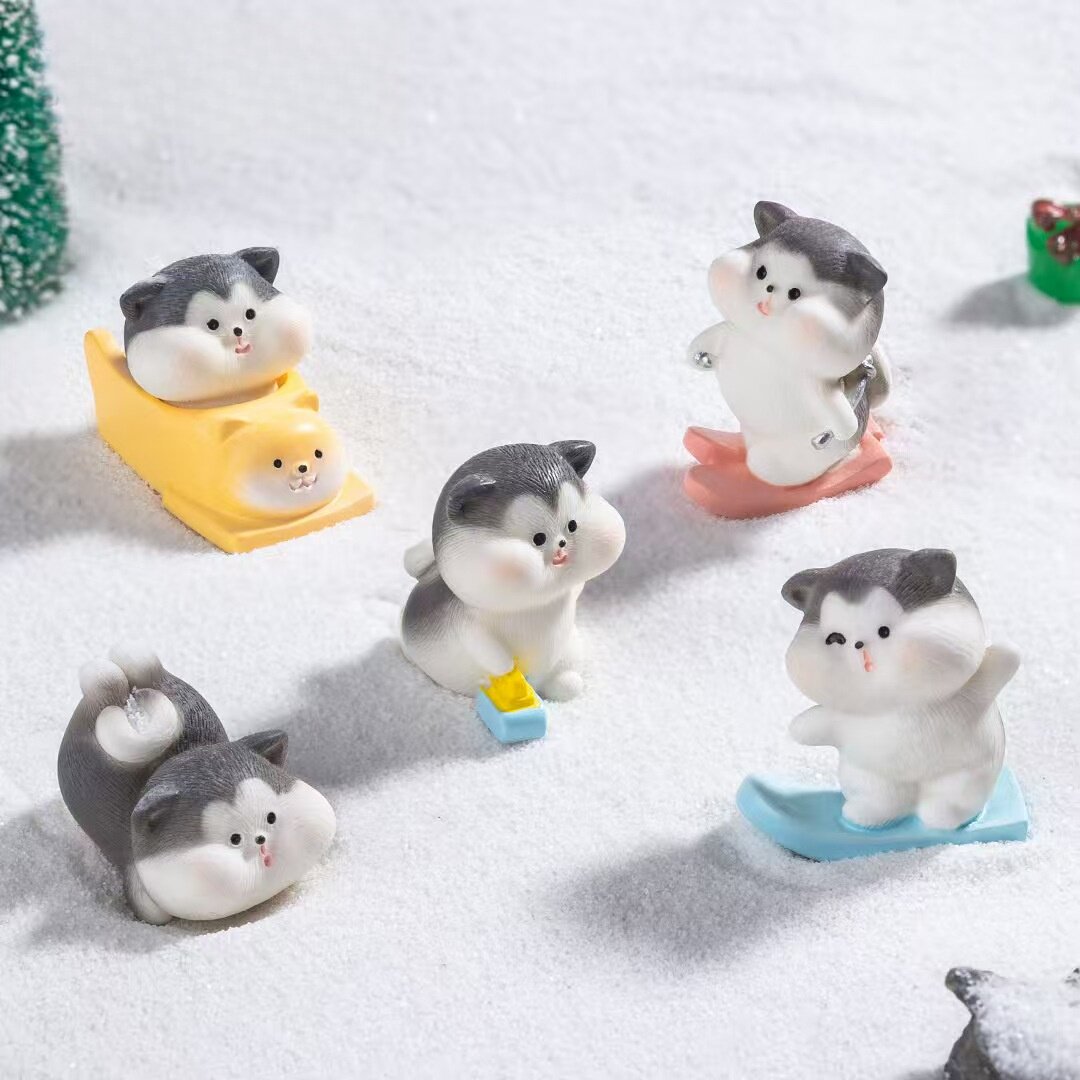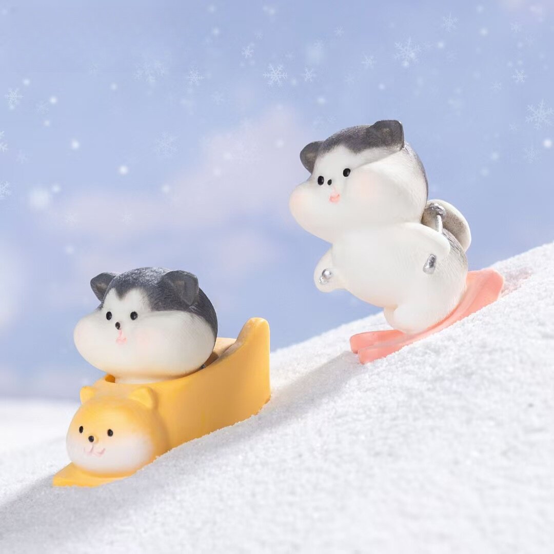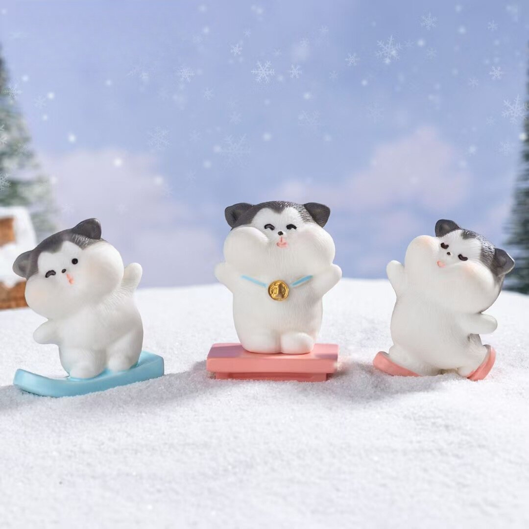 微景观创意运动滑雪小猫公仔 雪地造景diy装饰品挂配件微缩小摆件