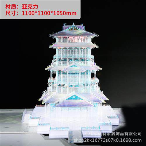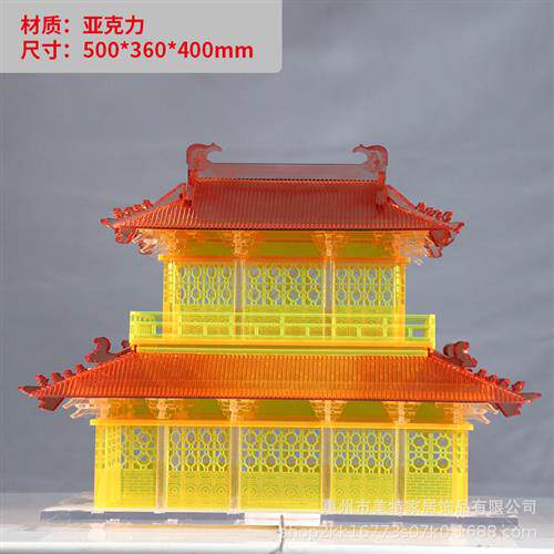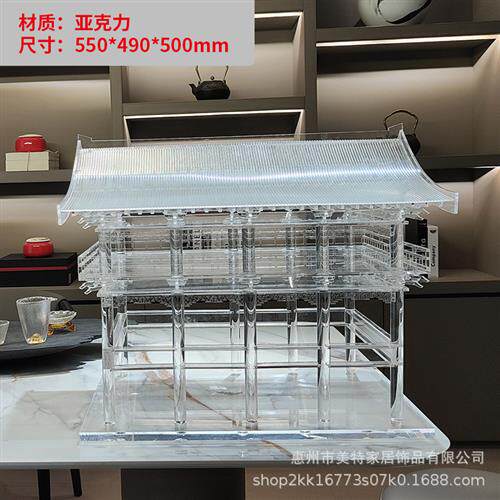 中国风阁楼古建筑房子透明亚克力四角凉亭酒店别墅摆件装饰艺术品
