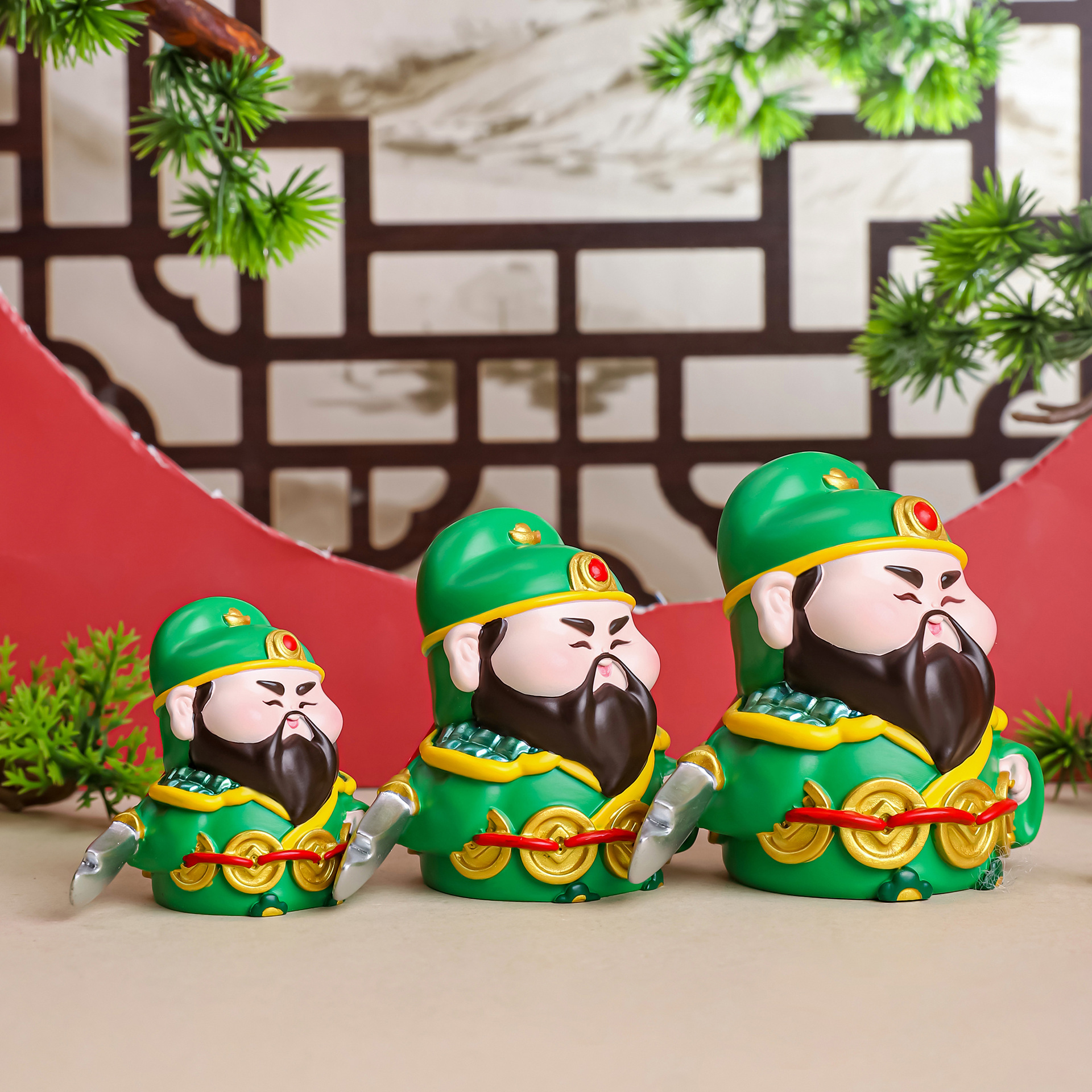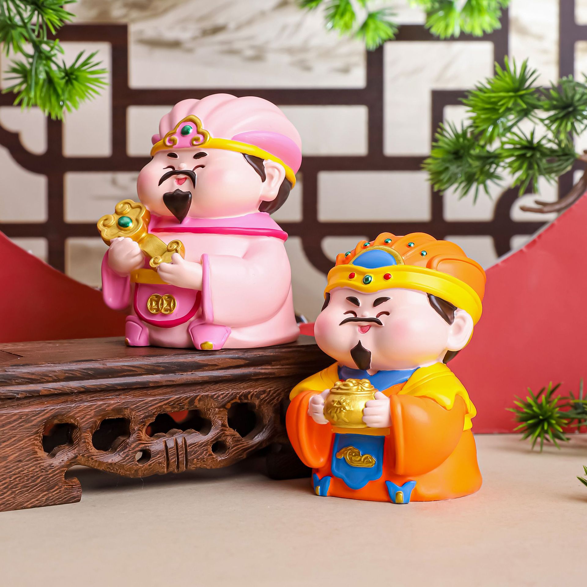 百福五路财神树脂工艺品摆件可爱小财神中式家居装饰汽车摆件