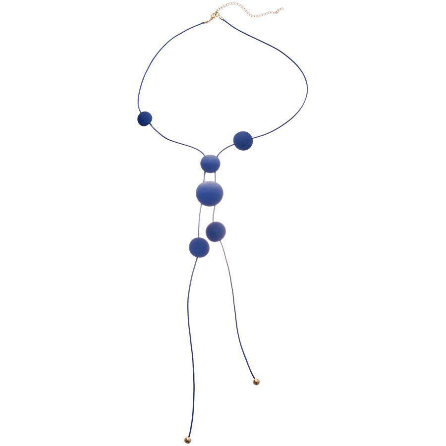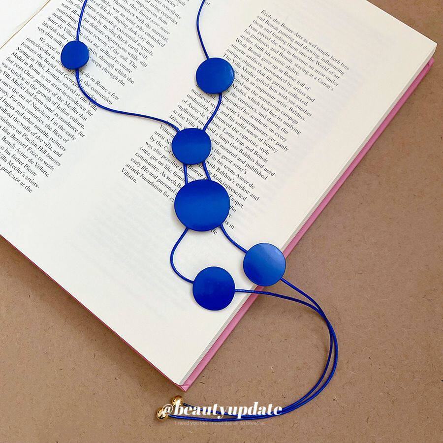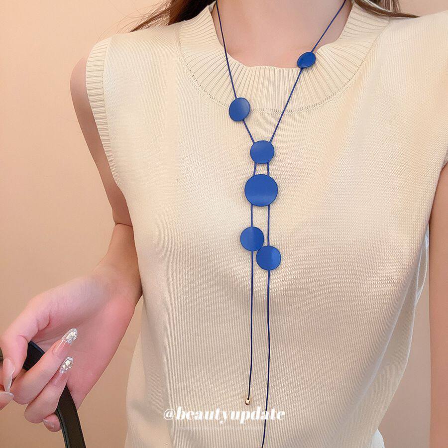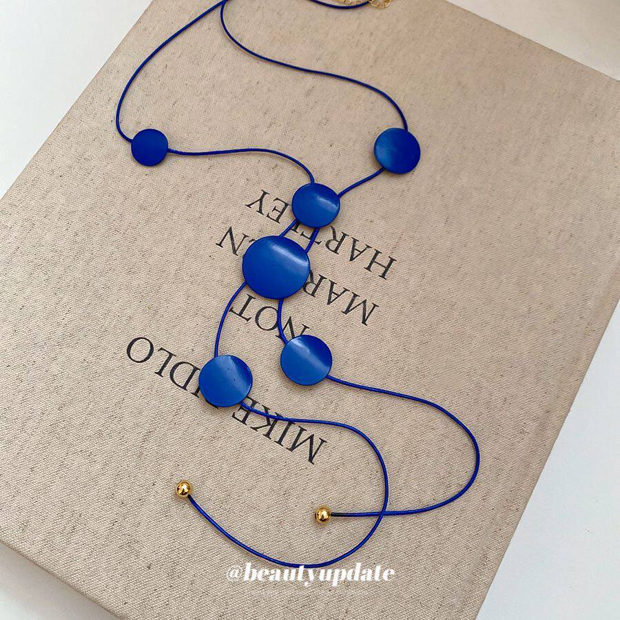 蓝调时刻~克莱因蓝色圆片项链夏季度假风锁骨链精致时尚项饰