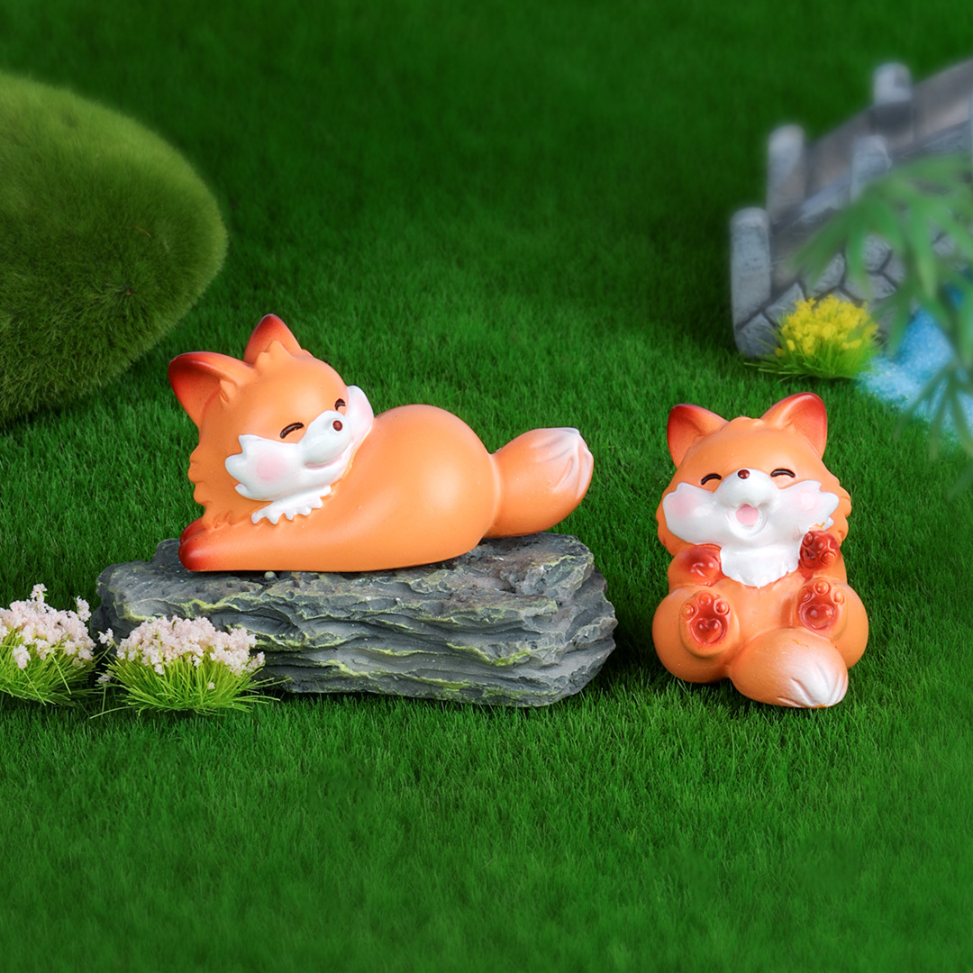 创意可爱卡通小狐狸 微景观摆件多肉diy装饰品树脂工艺品桌面摆件