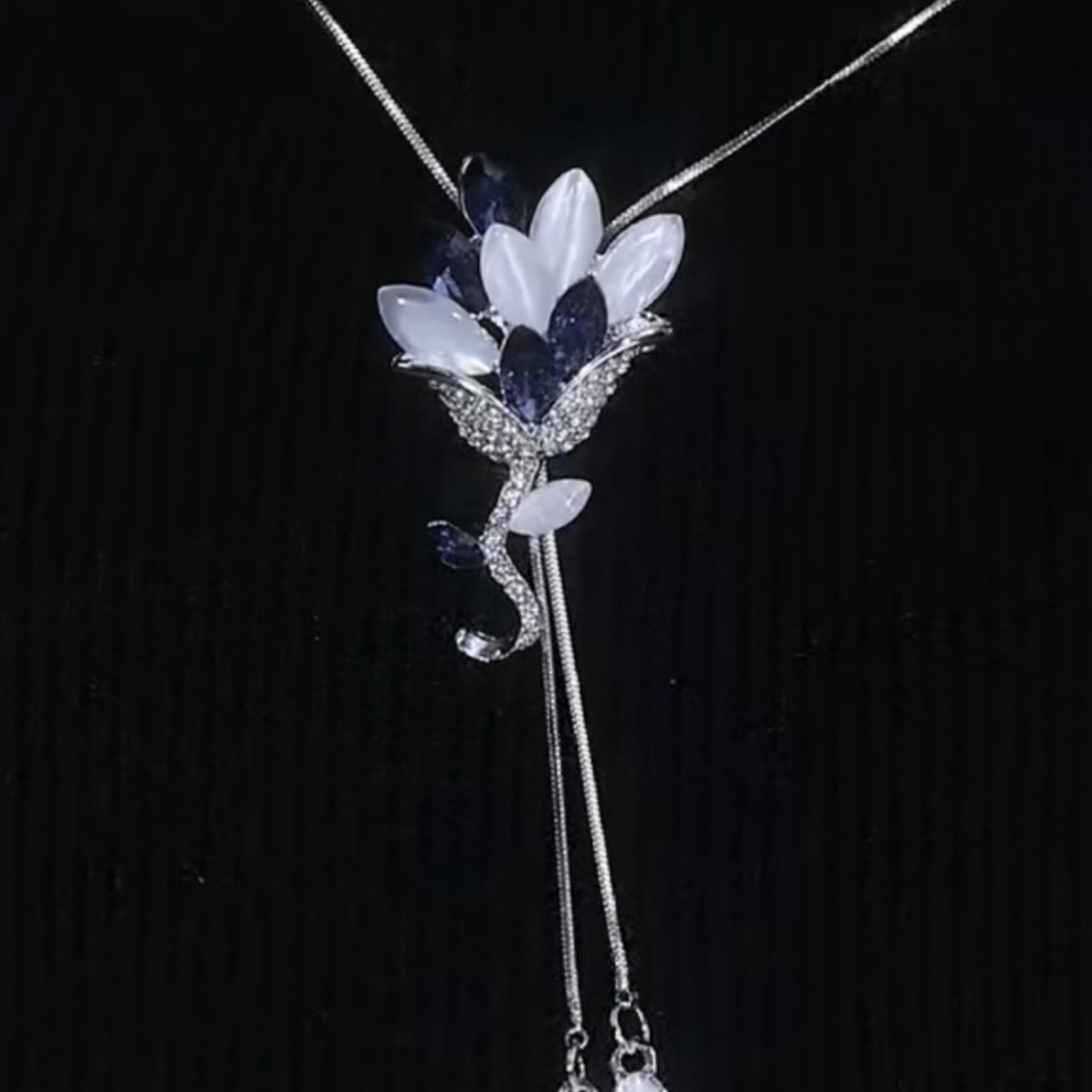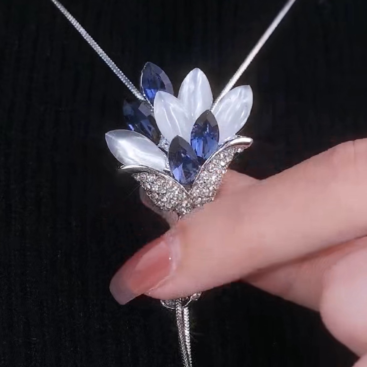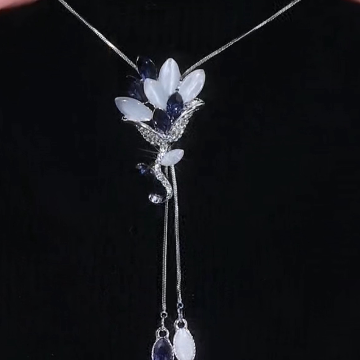 高级感蓝色水晶猫眼石吊坠毛衣链韩国简约时尚大气毛衣链挂件配饰