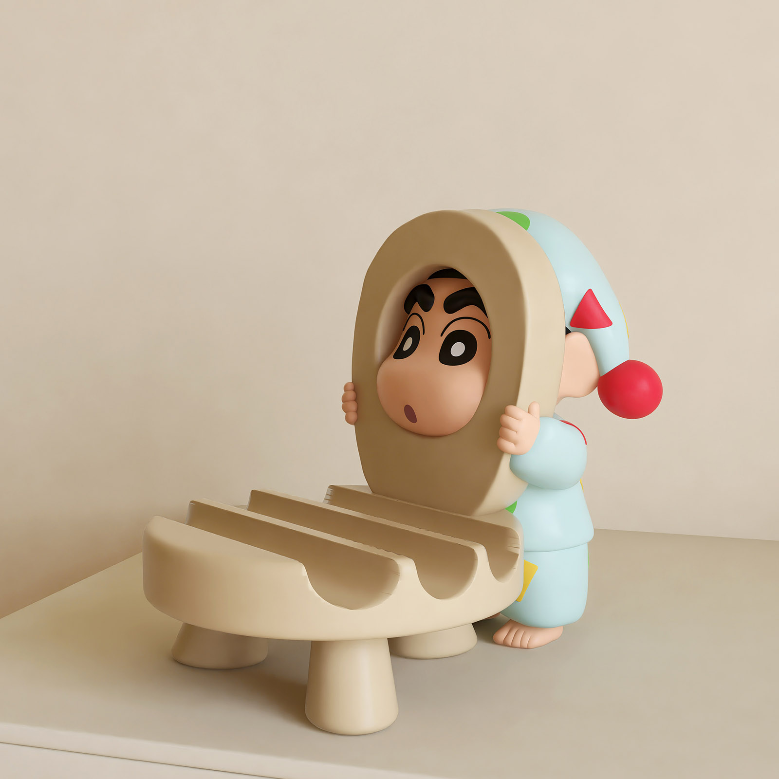 学生宿舍个性创意装饰礼品摆件办公桌面可爱蜡笔小新凳子手机支架