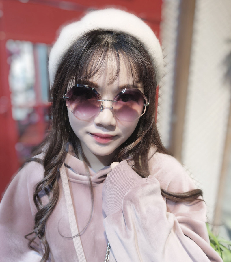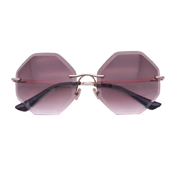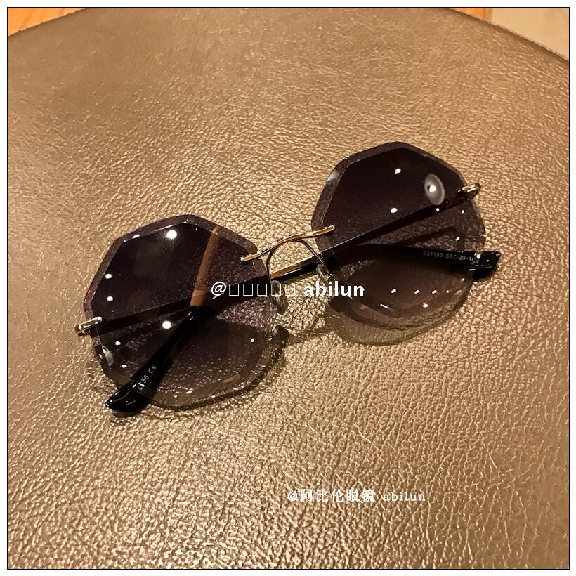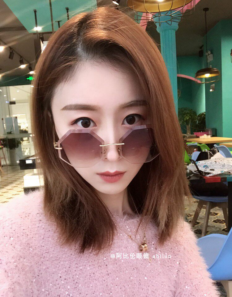 潮货帅酷新品墨镜八角边形无边框设计太阳镜渐变茶浅色切割边眼镜