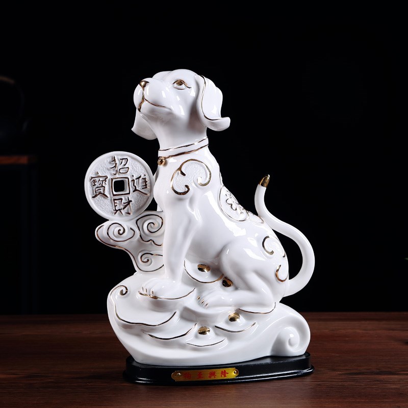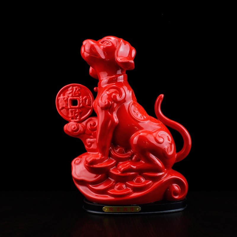 端陶瓷红色狗摆件十p二生肖家居客厅瓷器装饰招财大号狗狗