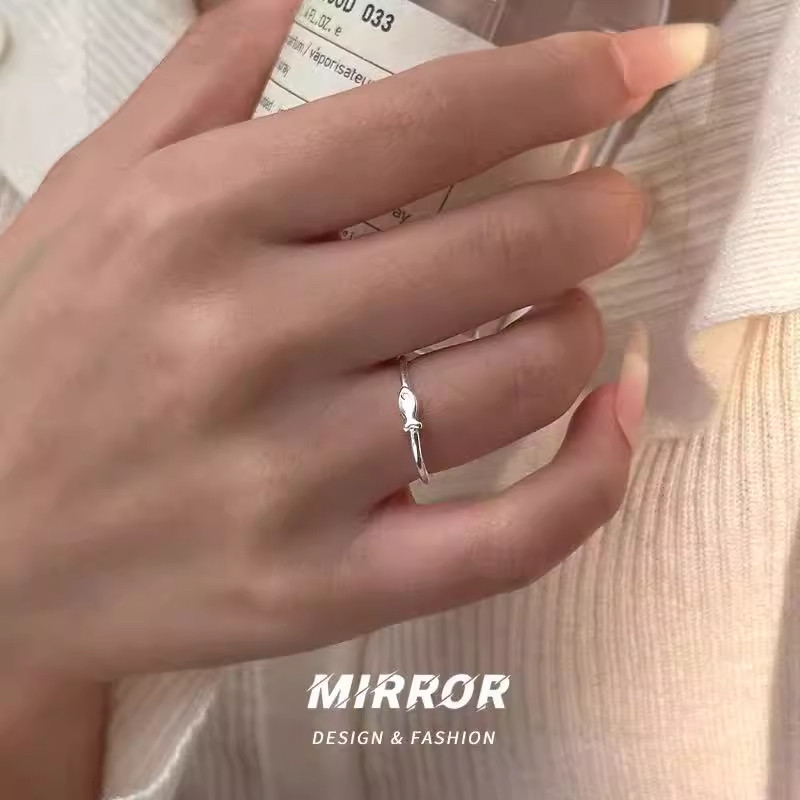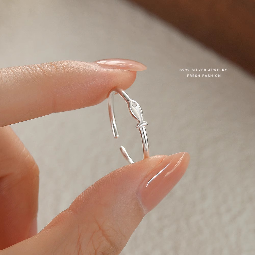 素圈戒指女锦鲤小鱼简约小众设计开口戒细款素圈百搭指环手饰