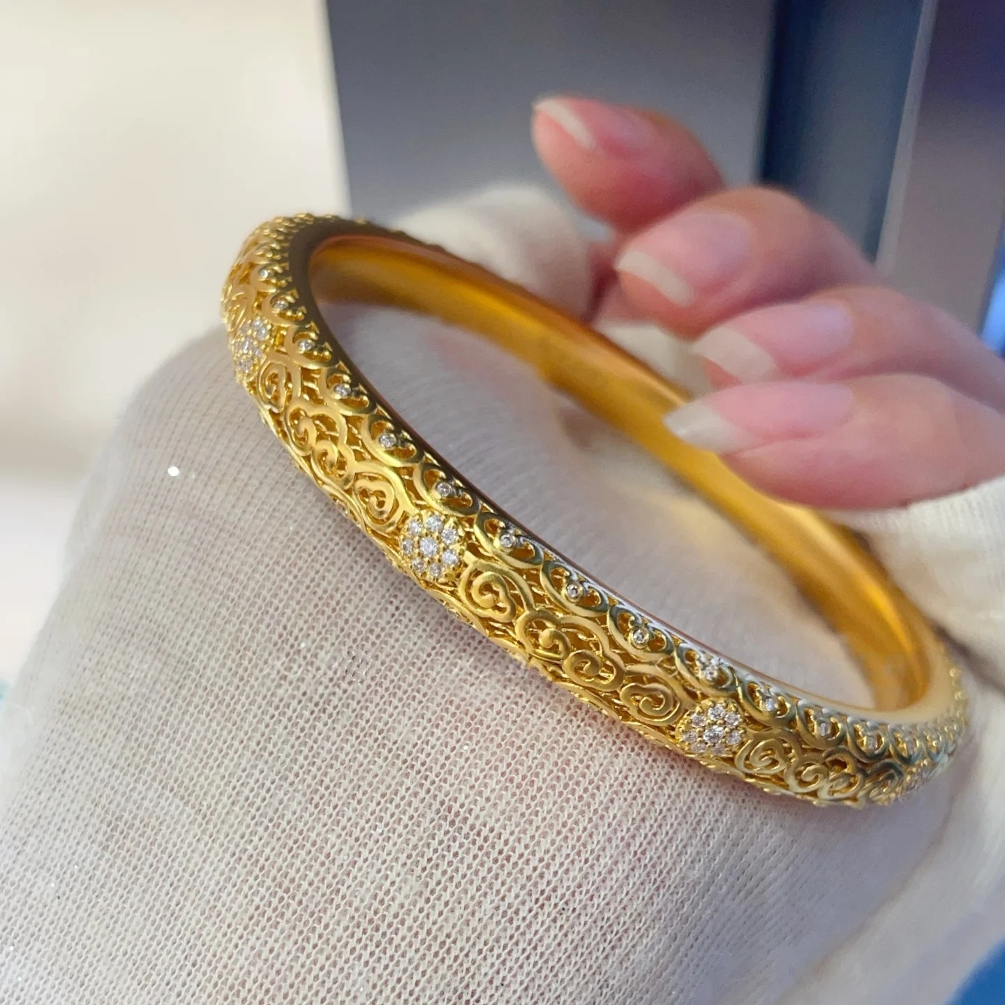 TSL谢瑞麟代购 祥云花丝镂空足金999点钻黄金手镯 新款专柜正品
