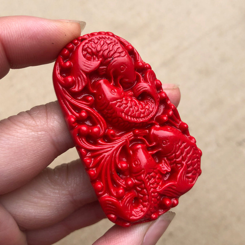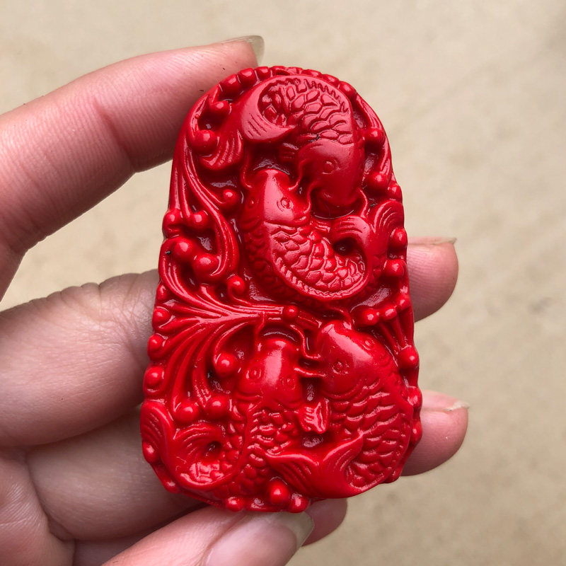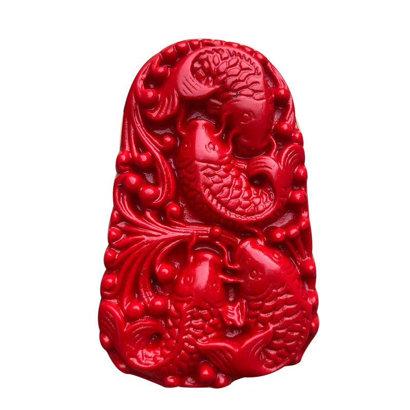 连年有余吊坠4条鱼天然朱砂红四季有余鱼玉挂件缺水补水龙门顺利
