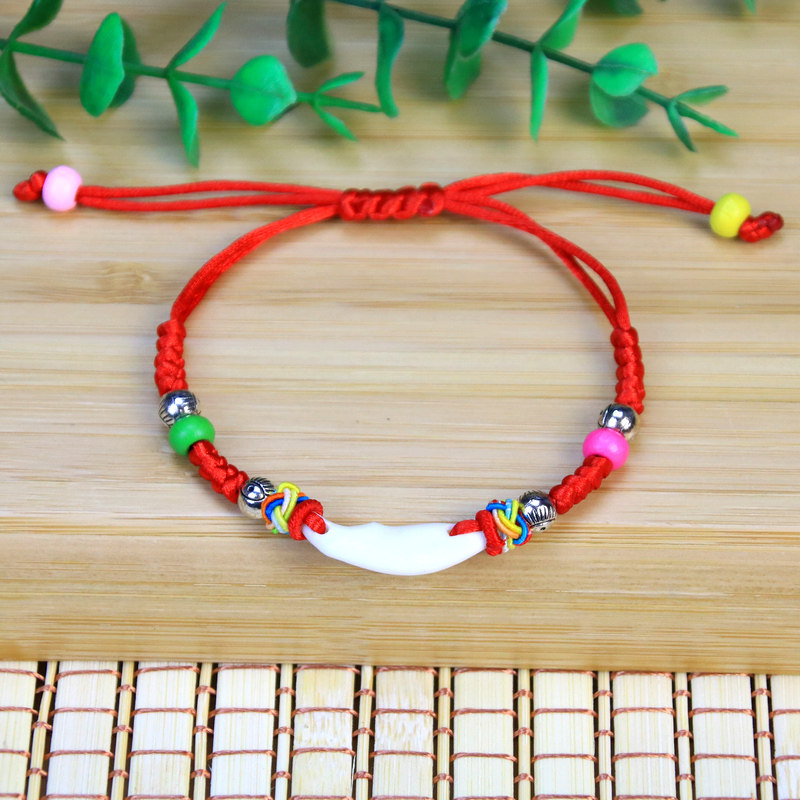 民族风手工编织男女本命年幸运金刚结红绳手链狗牙手绳饰品批发