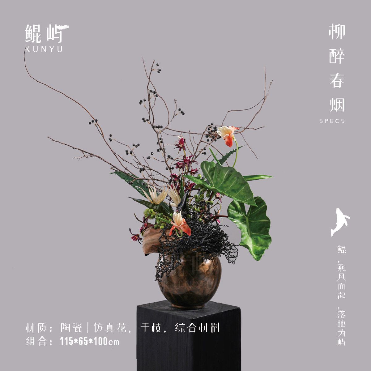 鲲屿 新中式禅意陶瓷花瓶【柳醉春烟】酒店玄关宋韵干枝高级摆件