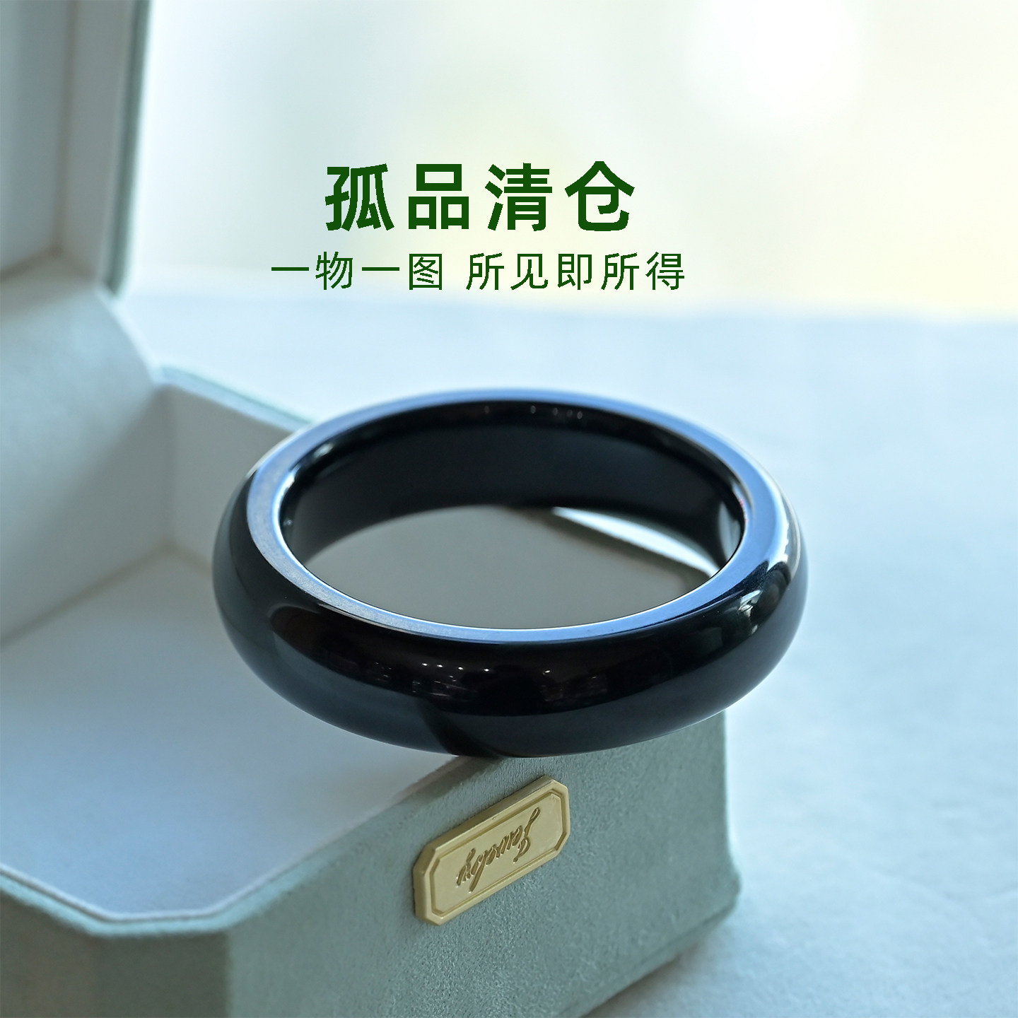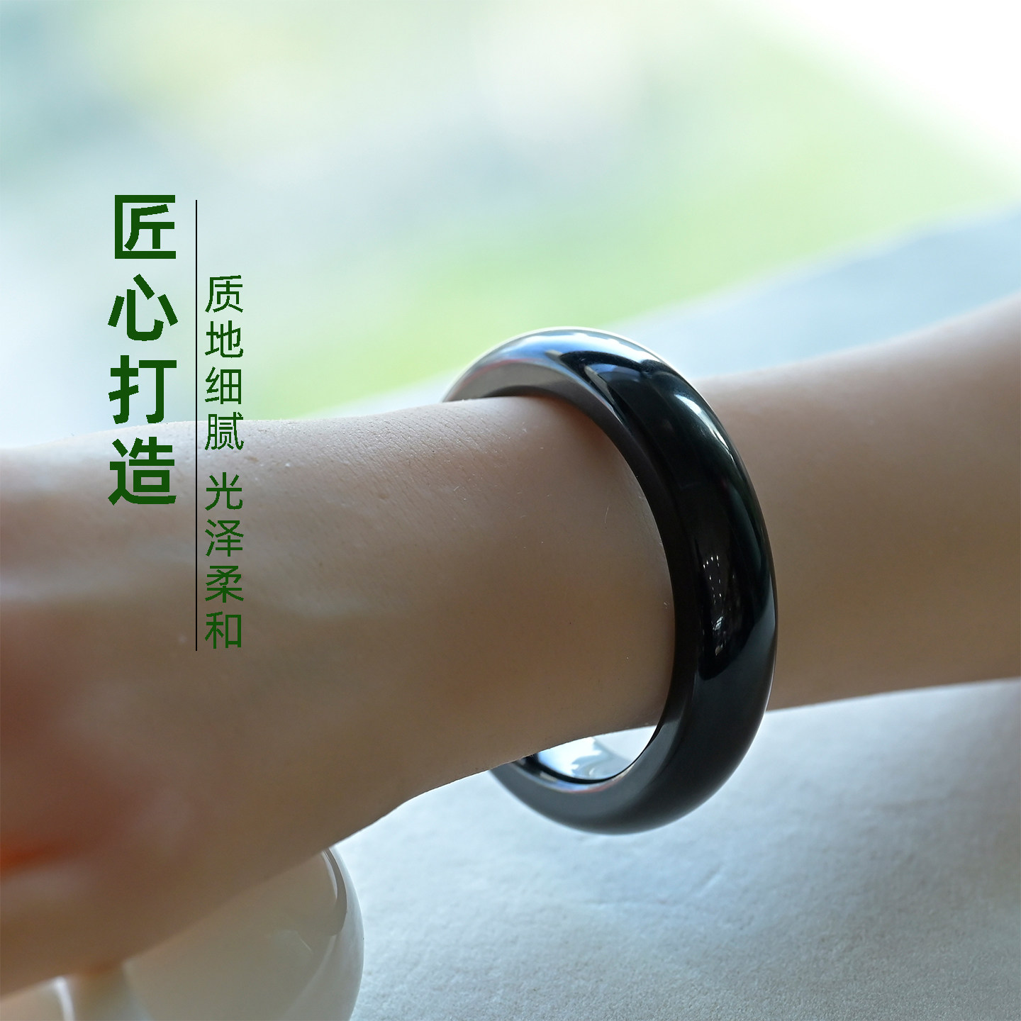 和田玉墨玉手镯亮黑色玉镯油黑乌鸡黑复古正圈50小号宝宝镯子饰品