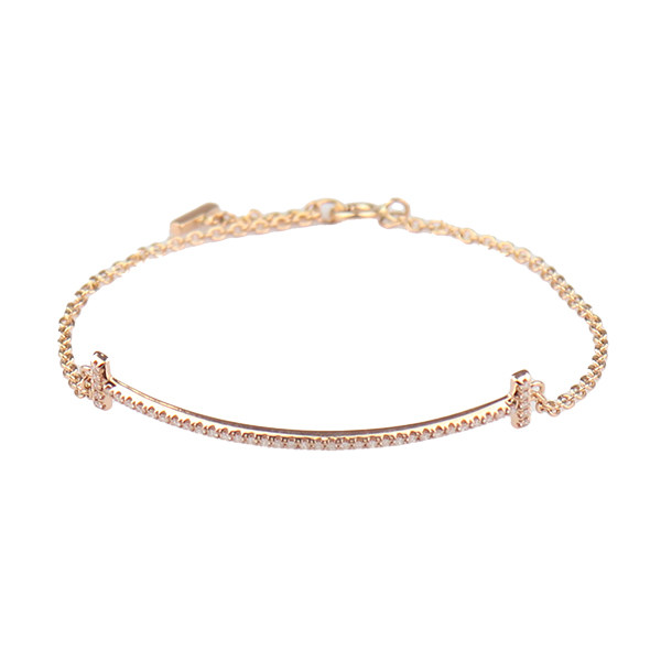 中古「95新」TIFFANY蒂芙尼T微笑镶钻石中号750黄金手链60150747