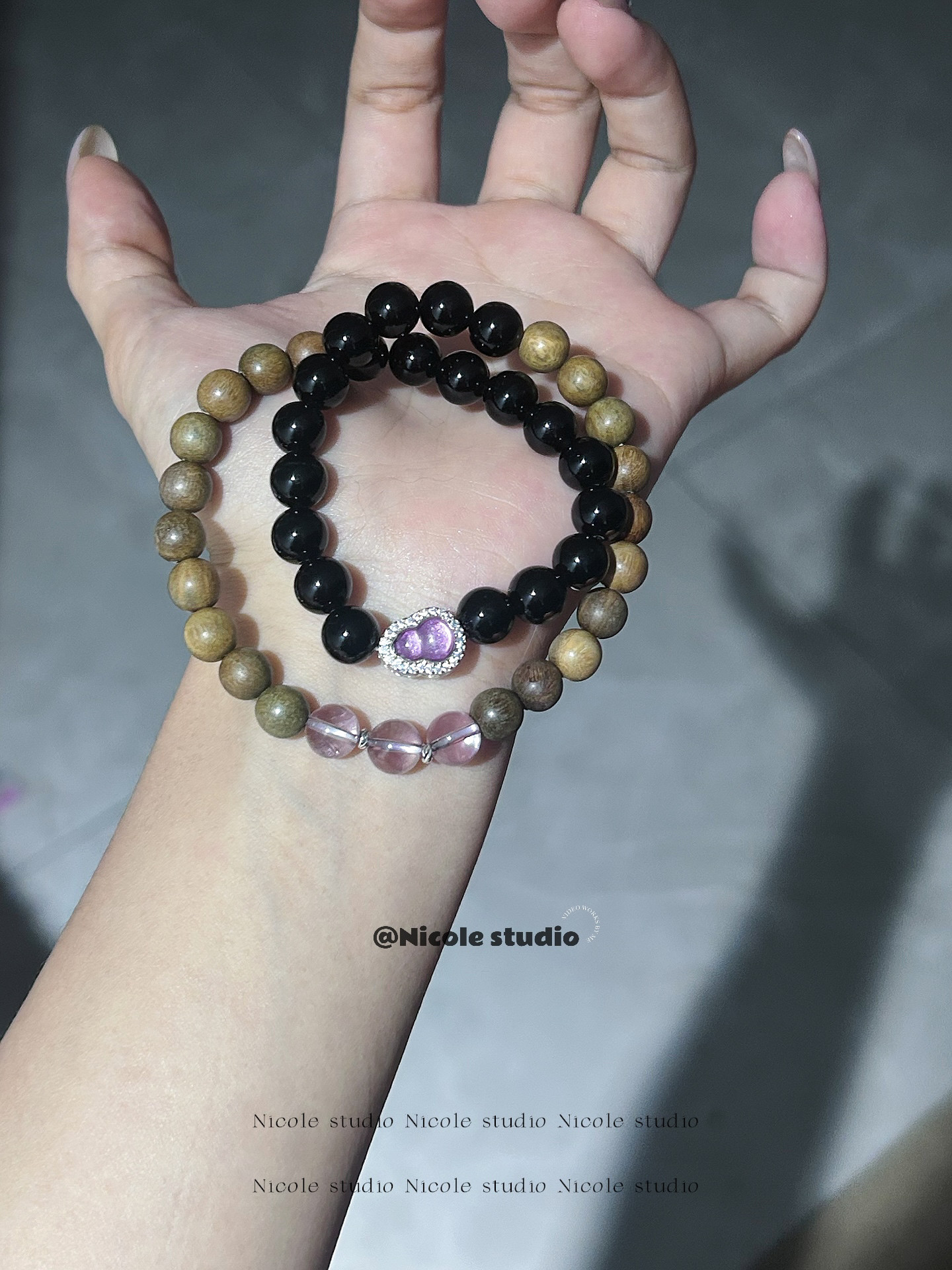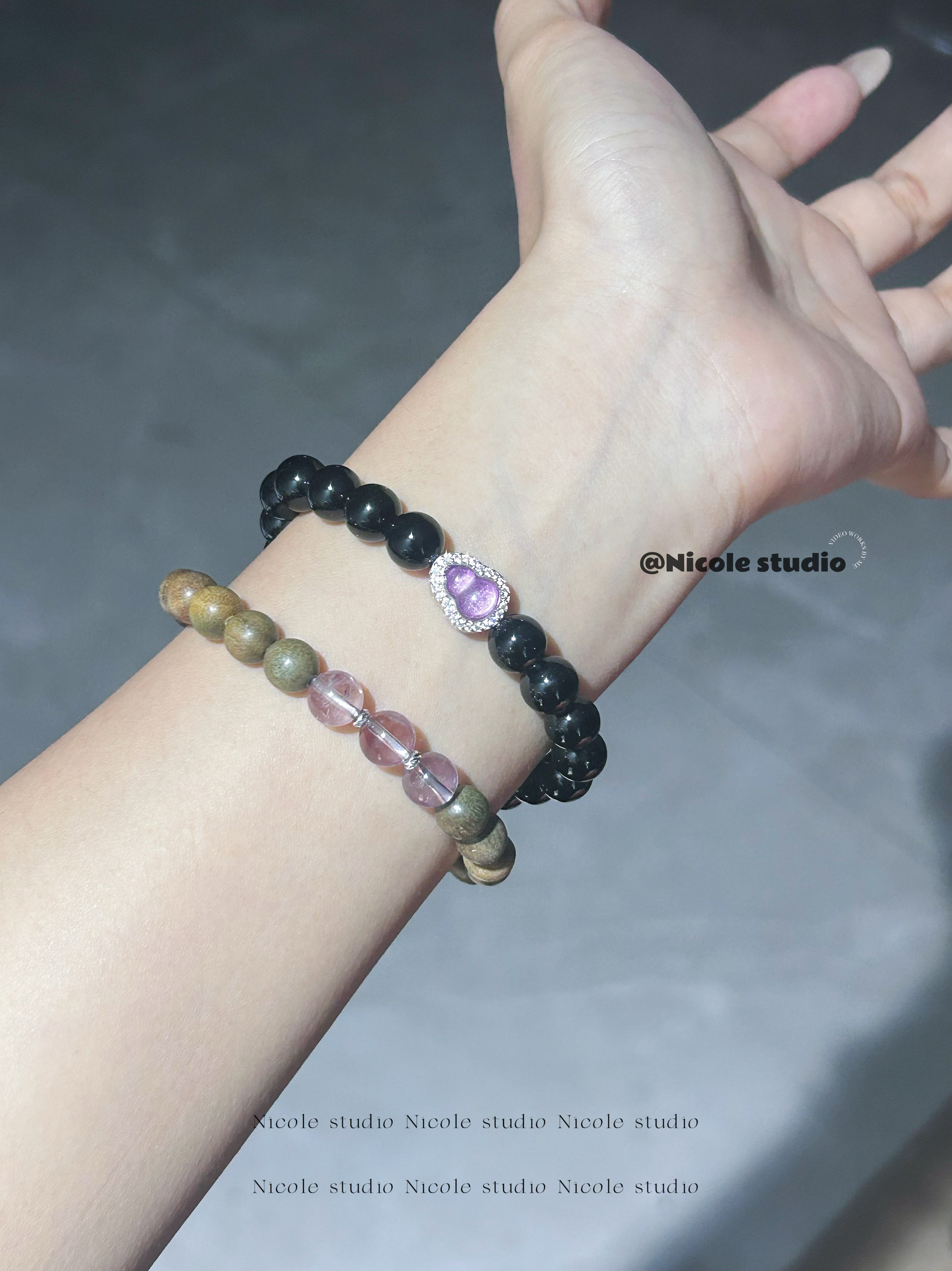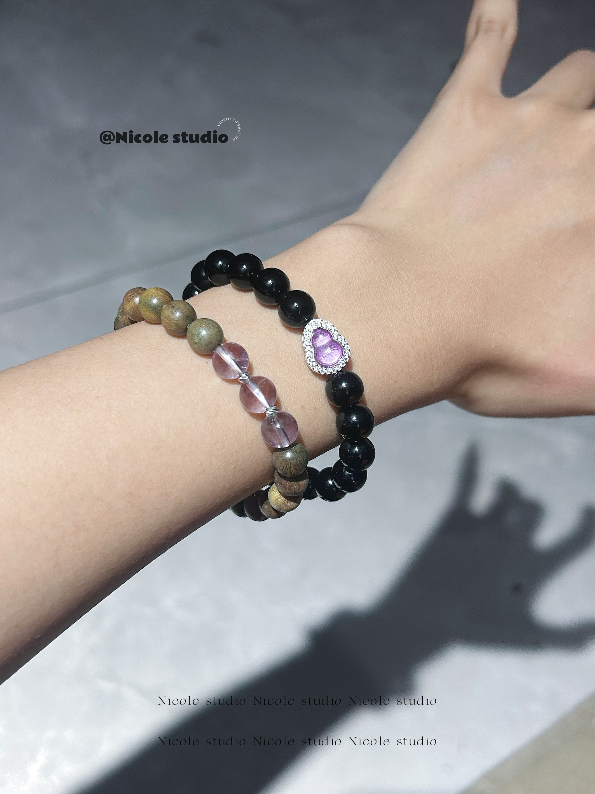Nicole「诸事顺遂」原创五行双圈手串黑曜石绿檀木紫晶手链火水木