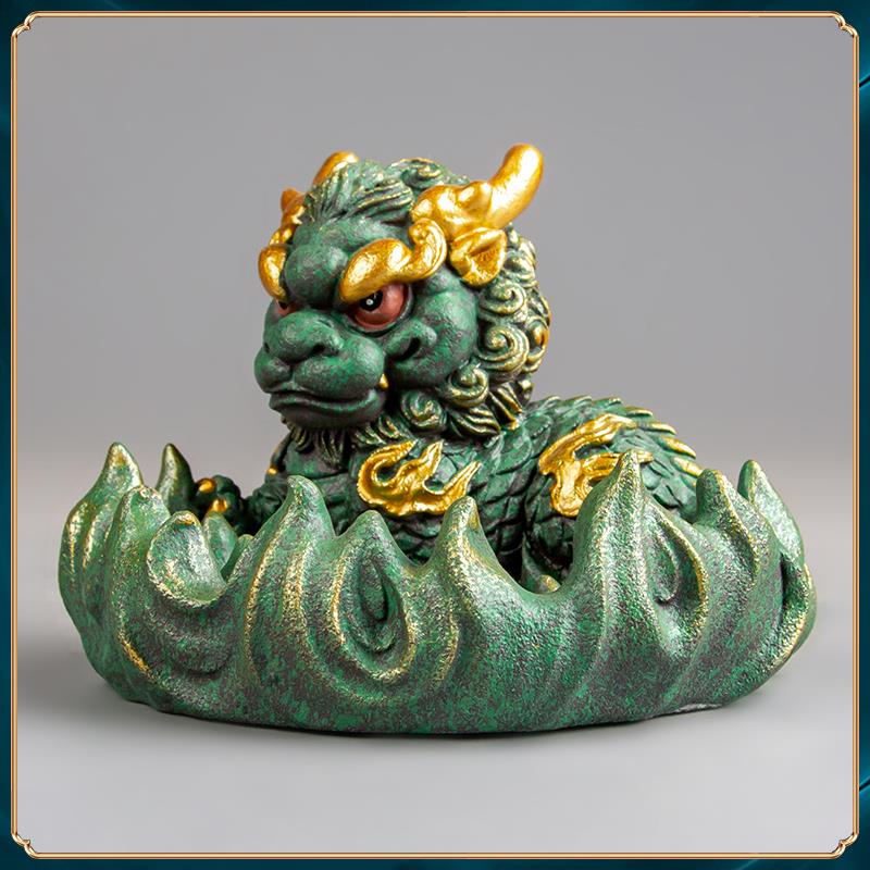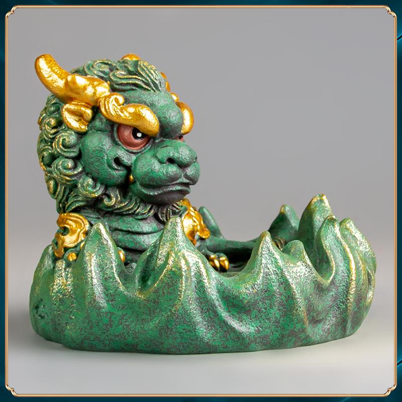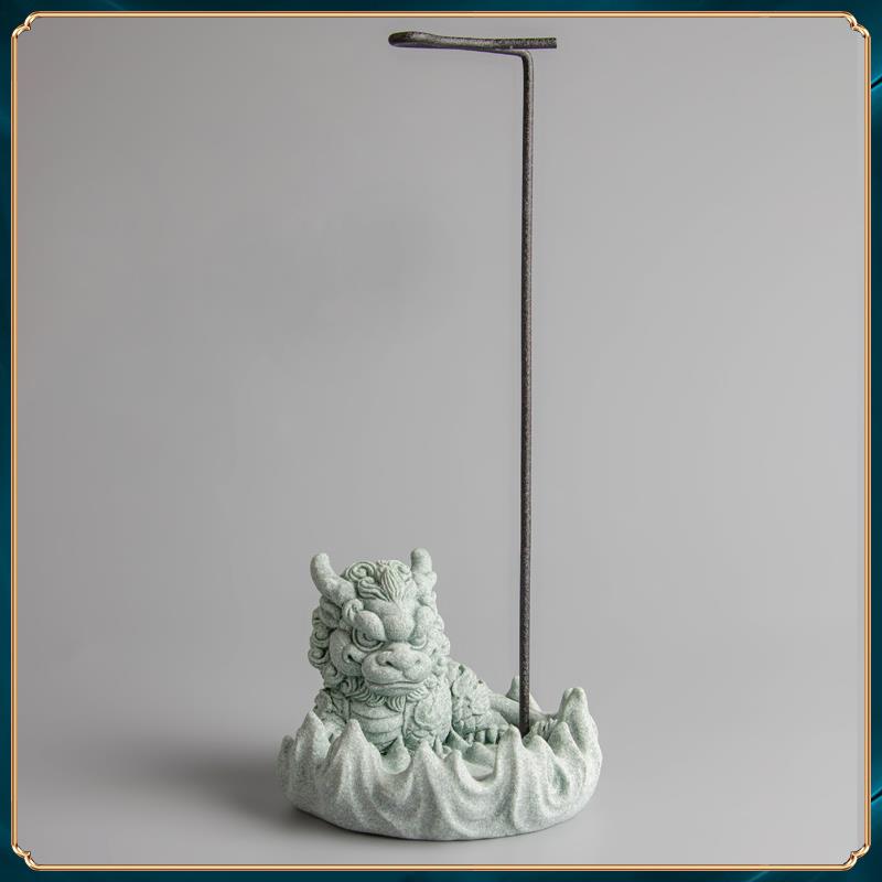 器物志创意青砂石麒麟办公室桌面玄关装饰摆件中式高档香炉线香插