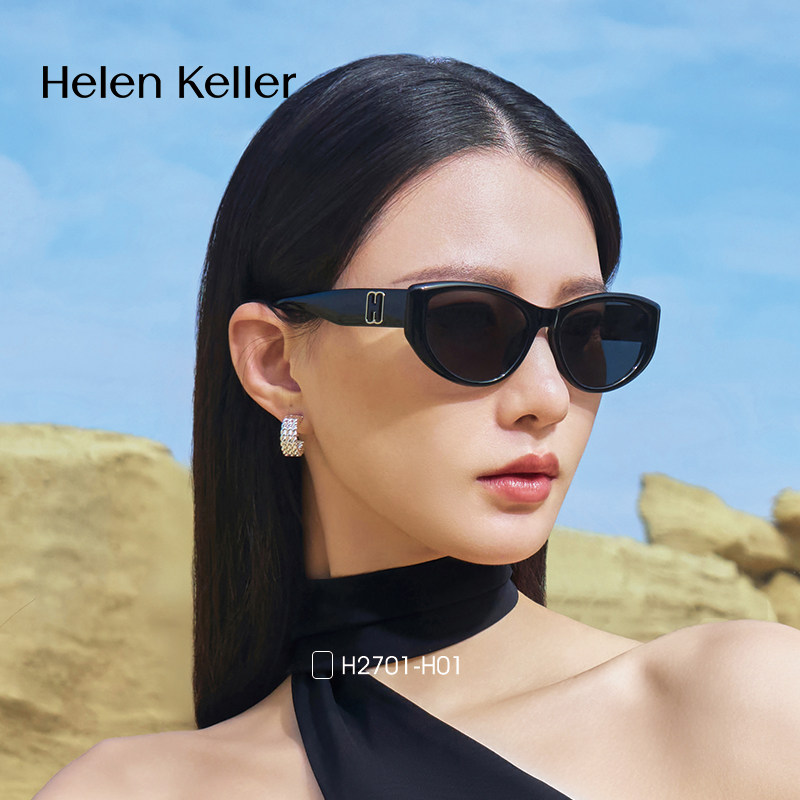 海伦凯勒2026新款猫眼黑超墨镜女近视可配度数偏光太阳眼镜H2701