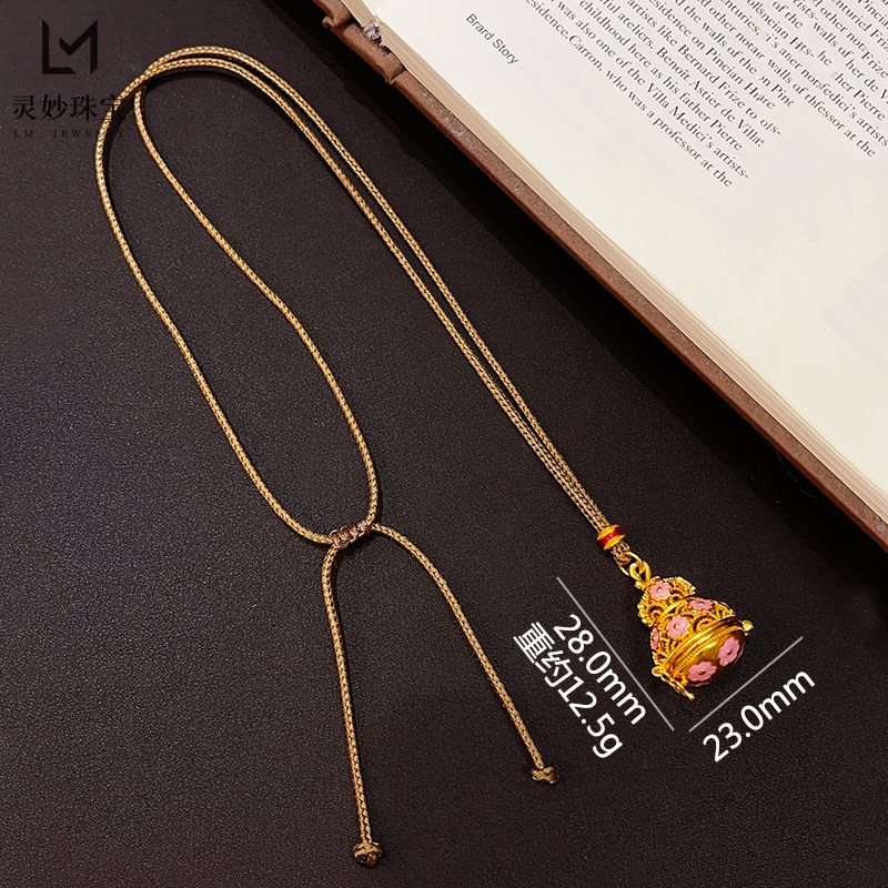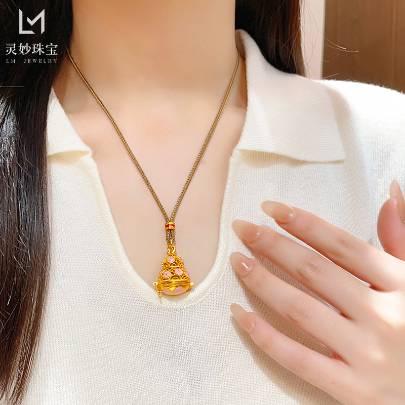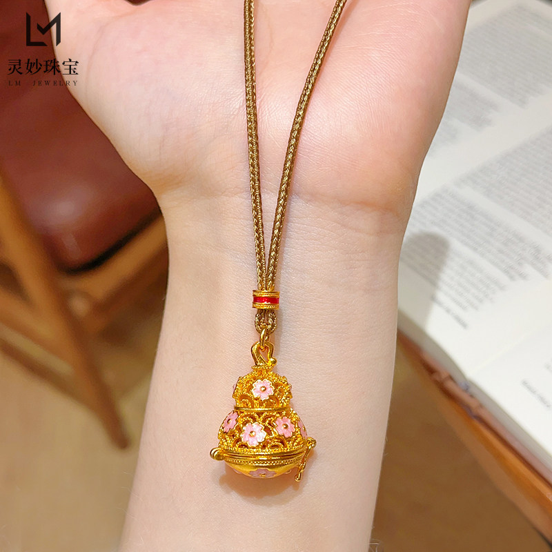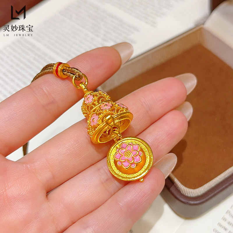 金店同款沙金珐琅彩粉葫芦可打开莲花吊坠项链镂空福禄挂坠送女友