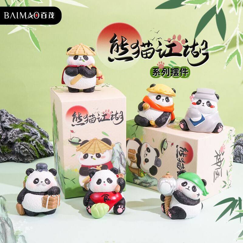 精品树脂木雕风熊猫摆件创意精致熊猫桌面装饰品摆饰小礼物礼品