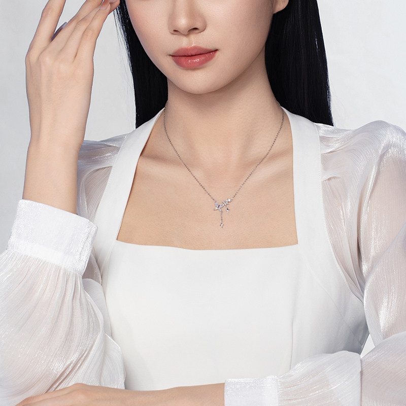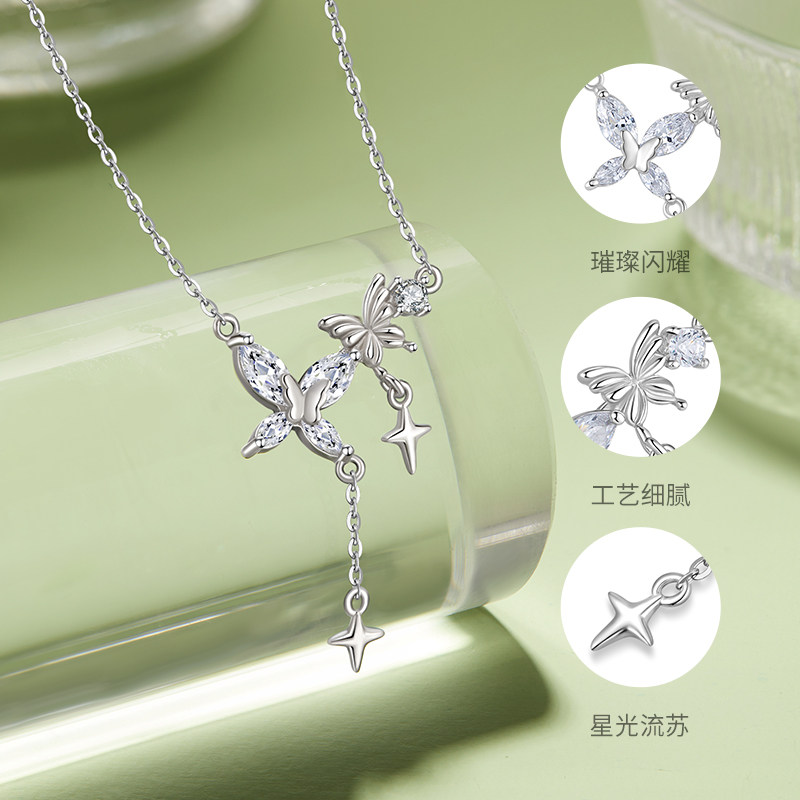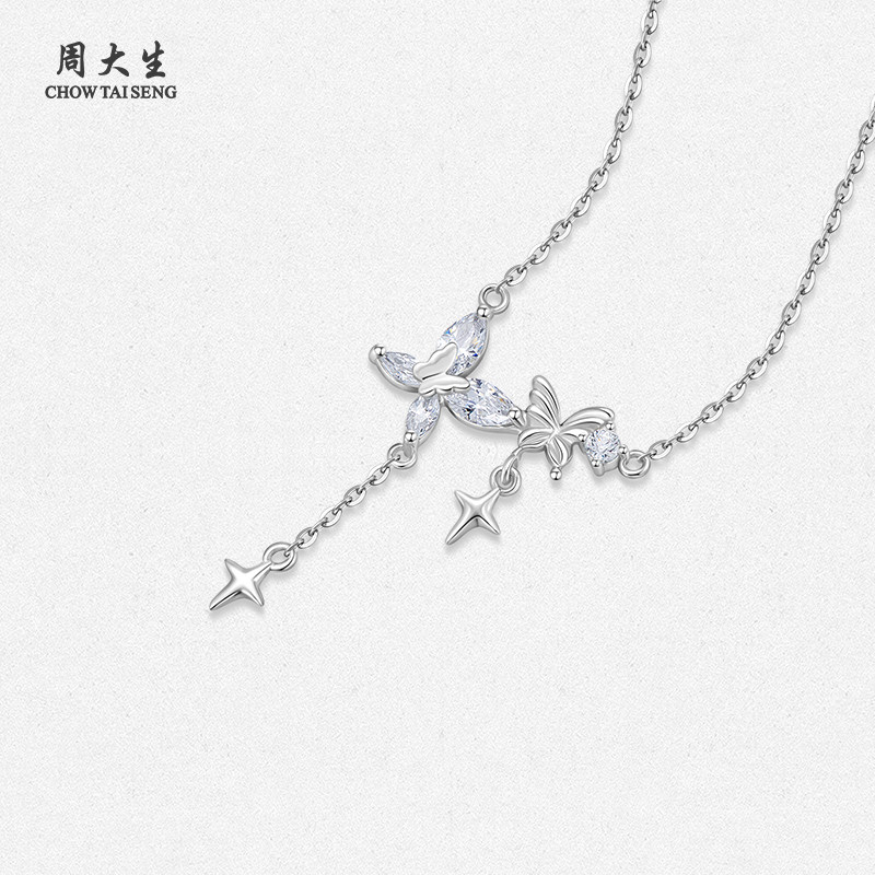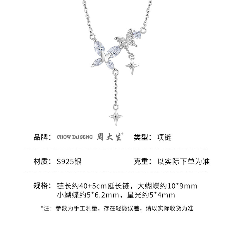 周大生银饰银项链S925银蝴蝶星光锆石项链送女友老婆妈妈节日礼物