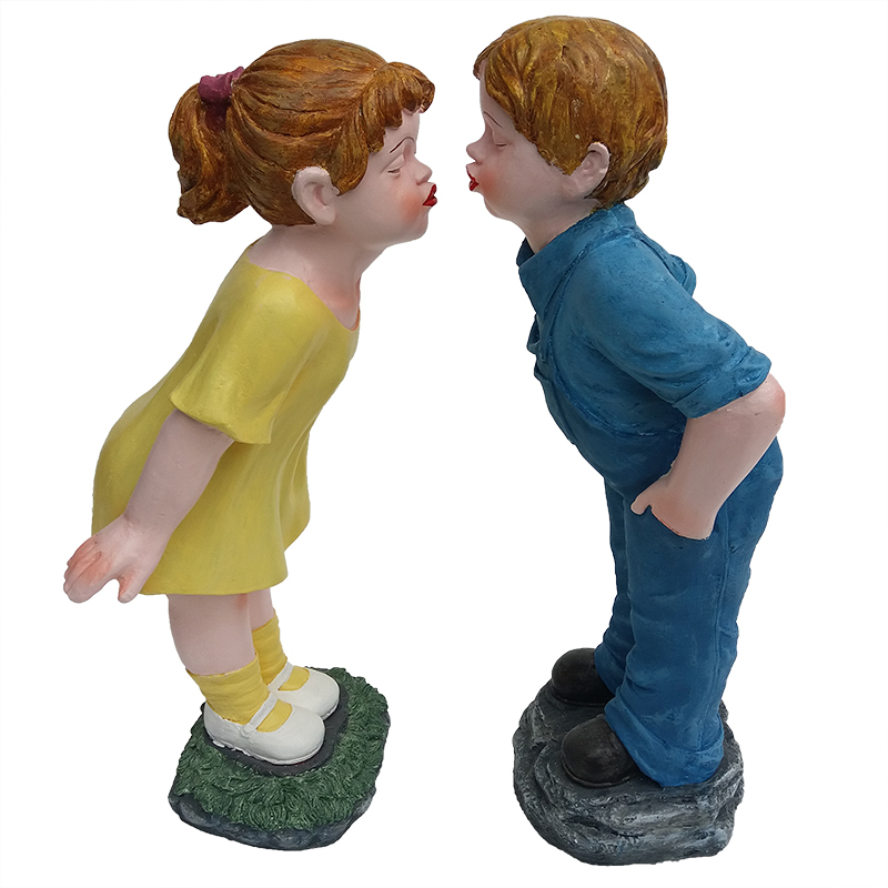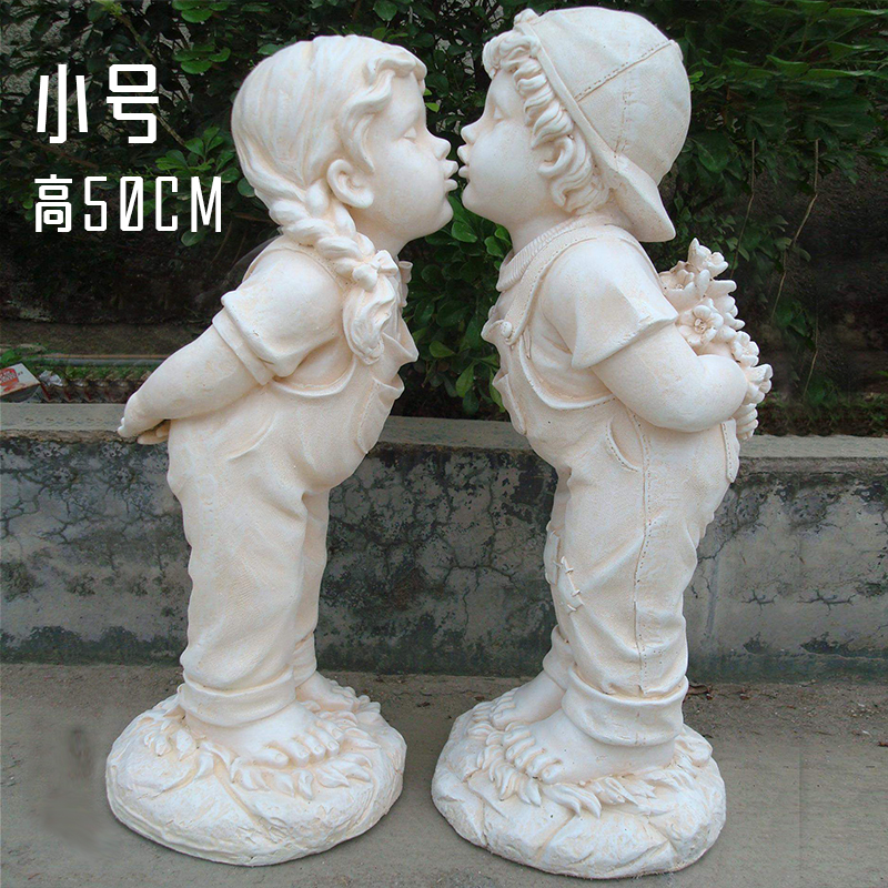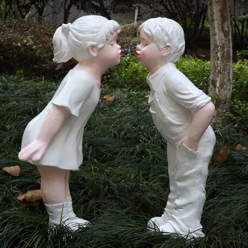 欧式小孩雕塑室外室内园林景观玻璃钢迎宾摆件家居装饰亲吻小情侣