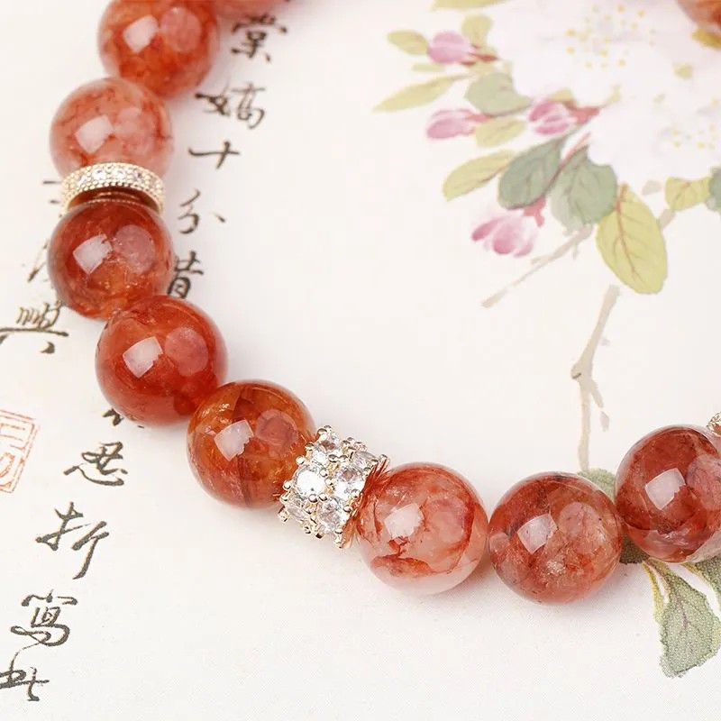 【朱焰】显白水晶手串财运红胶花串珠转运招财血红能量手链送对象
