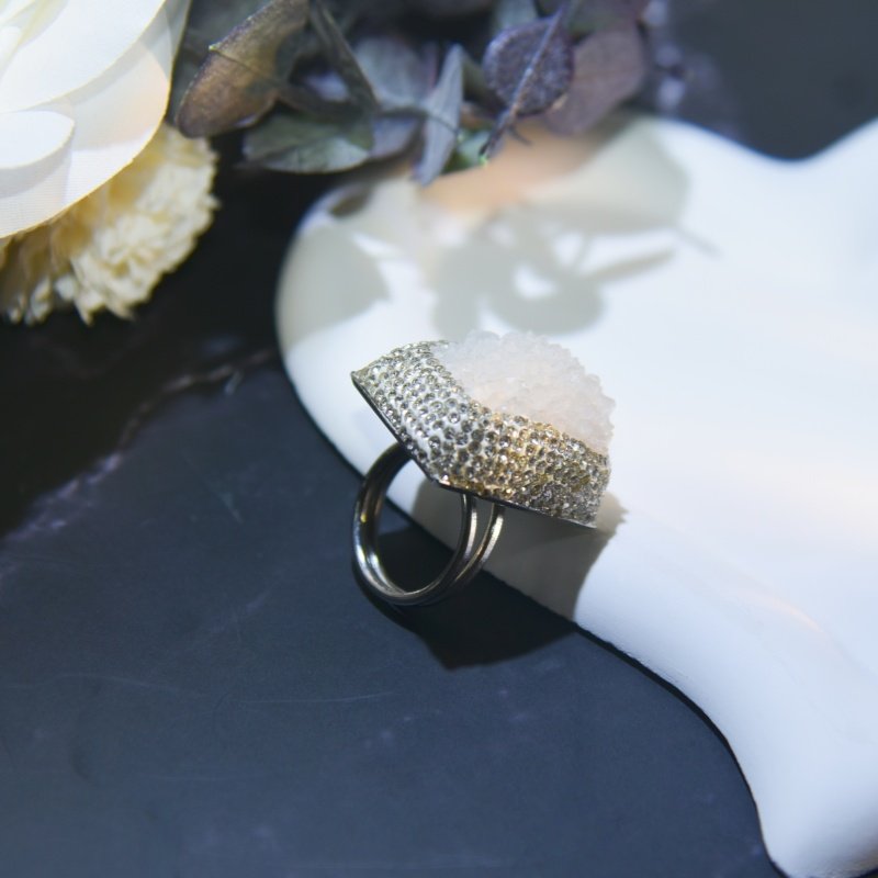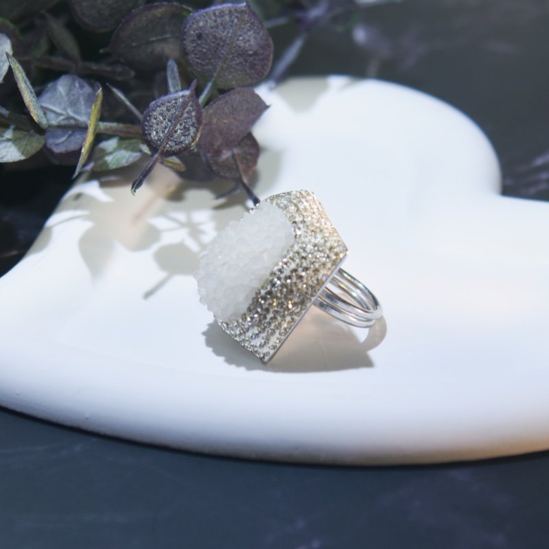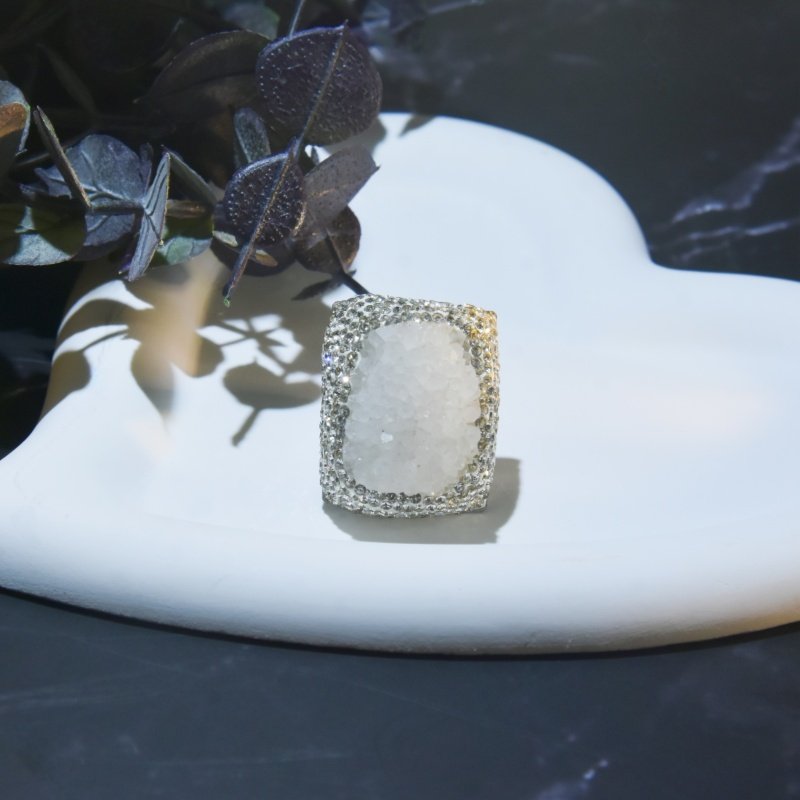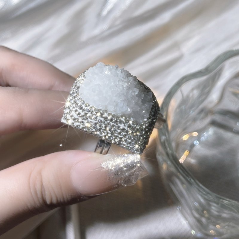 新款夸张爆闪白色天然水晶芽体开口可调节戒指粗旷个性指环饰品女