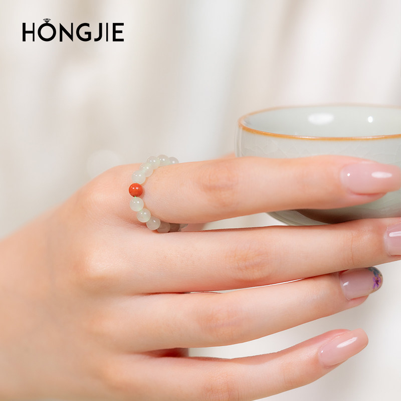 和田玉戒指女晴水东海水晶玛瑙宝玉石南红珍珠老山檀沉香单珠指环